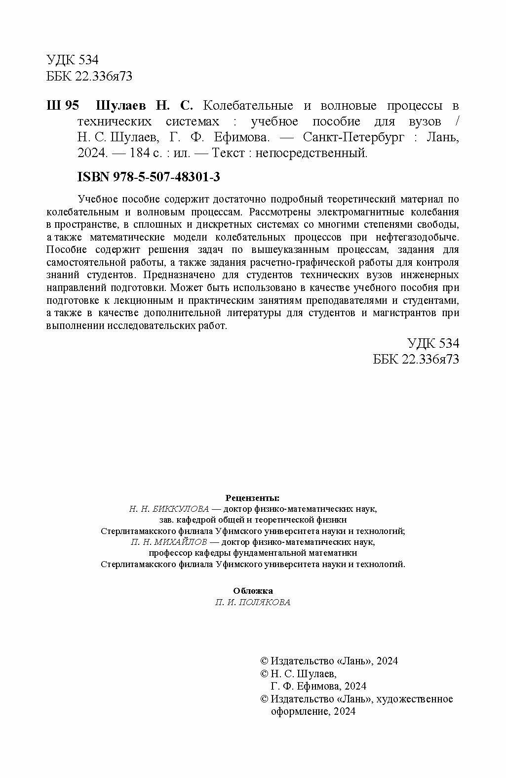Колебательные и волновые процессы в технических системах. Учебное пособие для вузов (Н. С. Шулаев); Издательство ЛАНЬ, 2024
