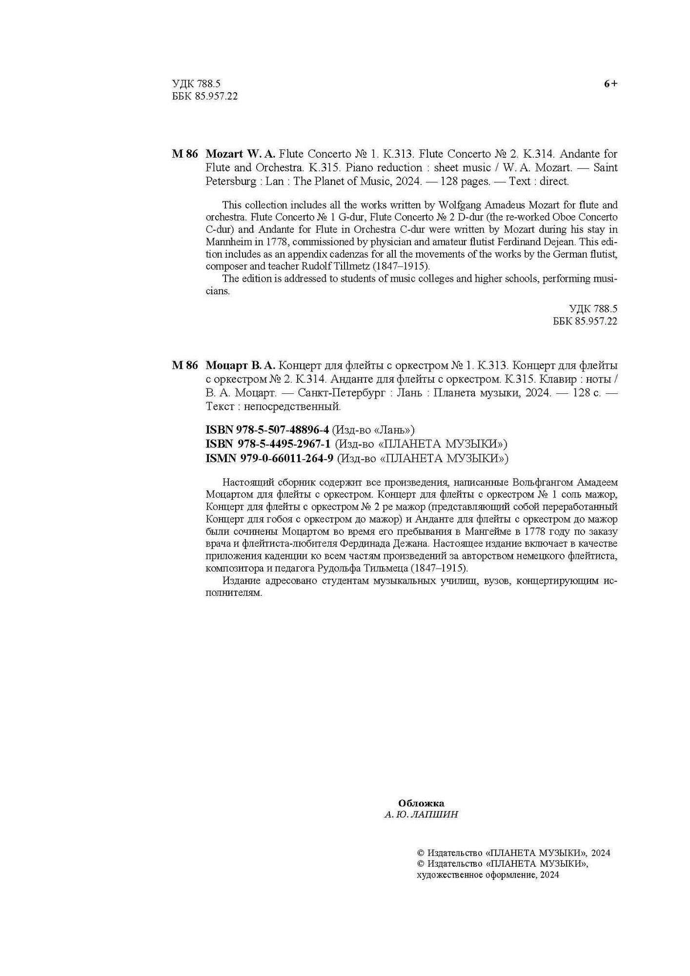 Концерт для флейты с оркестром № 1. К. 313. Концерт для флейты с оркестром № 2. К. 314 (Моцарт Вольфганг Амадей); Планета Музыки, 2024