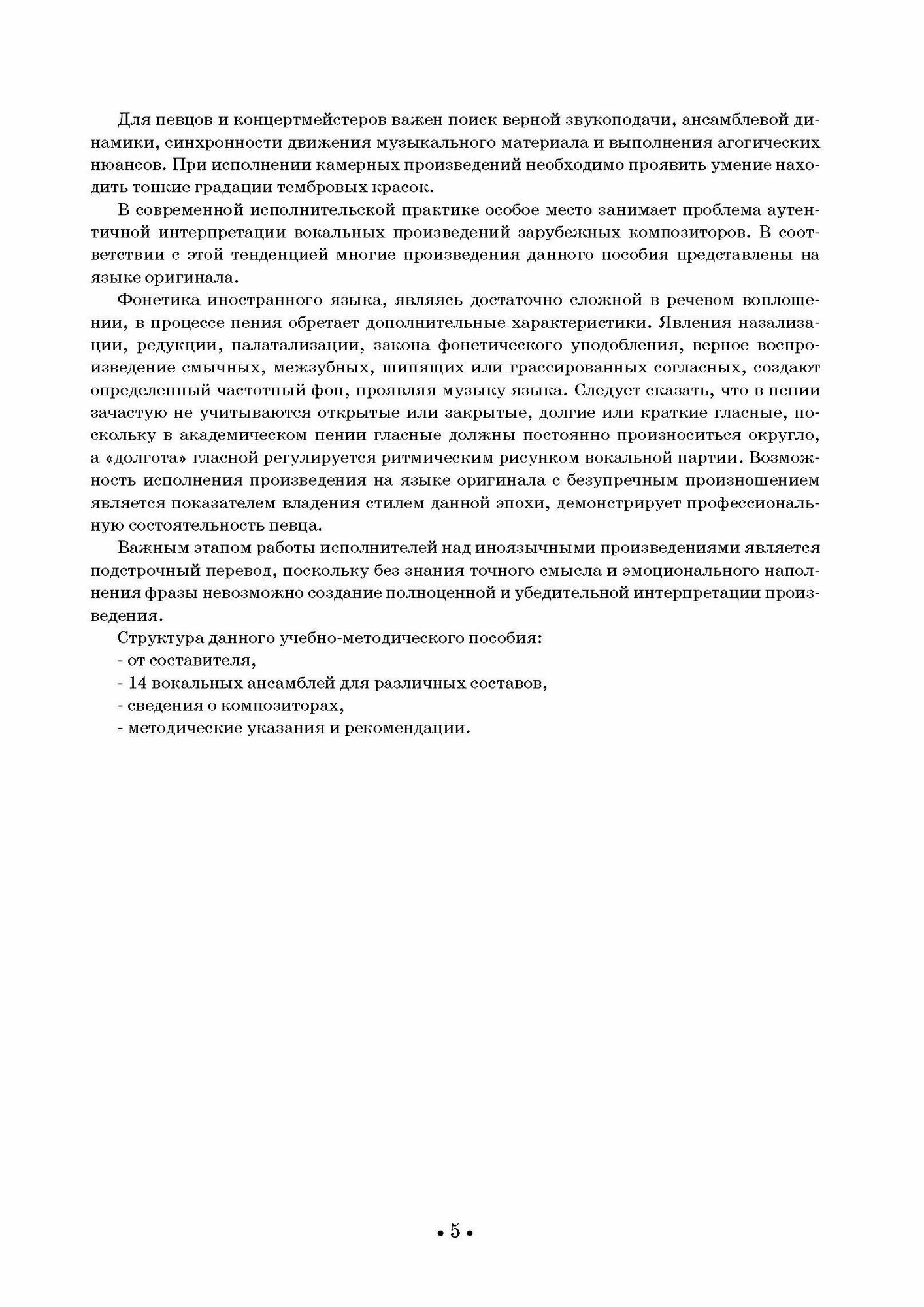 Учебно-методическое пособие «Вокальный ансамбль» составлено из авторских переложений и аранжировок для ансамблей различных составов. Предназначено для студентов средних и высших учебных заведений сферы культуры и искусства. Также его можно рекомендовать солистам музыкальных театров и филармоний, преподавателям, концертмейстерам и любителям музыки.
