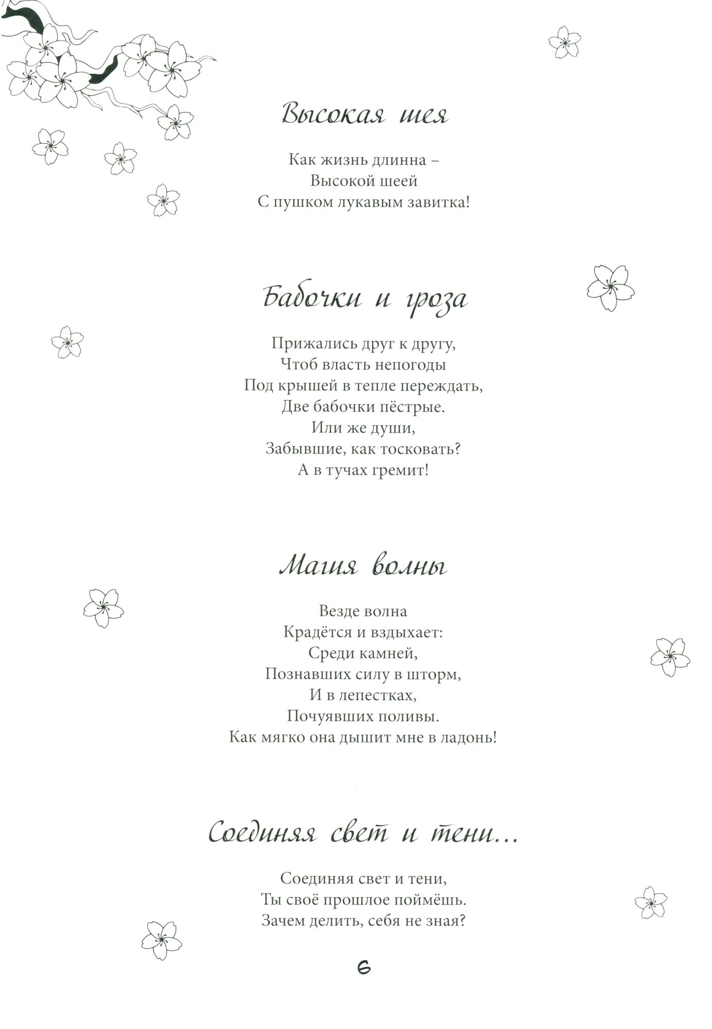 Суть новой книги Натальи Самошкиной можно выразить афоризмом: «Чем ритмичнее ты сонастроен с собственным Миром, тем отчетливее и выразительнее звучат для тебя незнакомые имена, коды Галактик и поэтические строчки». Не- обычность сборника не только в том, что иллюстрации и обложка созданы автором, но также и в том, что произведения, написанные в японском стиле, являются мерилом «прошлого, настоящего и будущего» для каждого, кто погрузится в их таинственный смысл. Не зря он носит говорящее название - «Книга гаданий Найры. Как жизнь длинна. ».