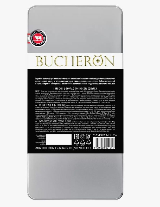 Шоколад горький BUCHERON со вкусом коньяка 100 г