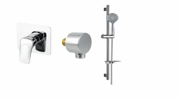 | Комплектация | смеситель (внешняя и скрытая часть), декоративная накладка, душевая штанга, держатель ручного душа, ручной душ, душевой шланг, мыльница, шланговое подсоединение, монтажный комплект |