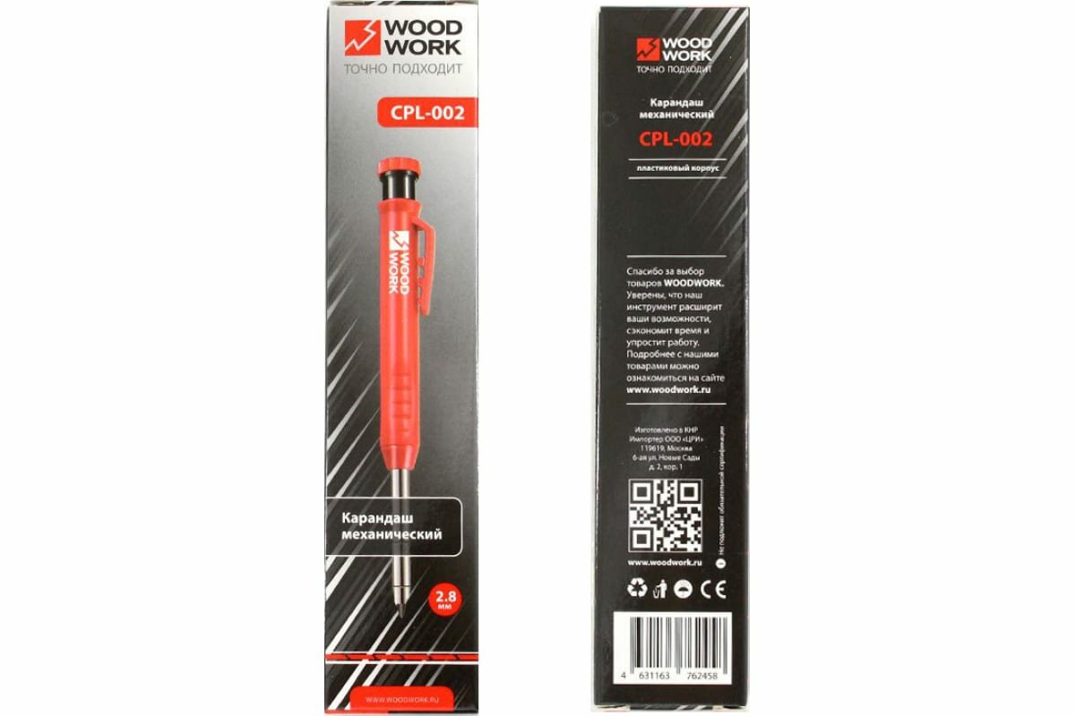 Механический карандаш WOODWORK с грифелем d2,8 мм, пластиковый корпус, с набором грифелей CPL-002 подходит для плотников, столяров, инженеров, архитекторов, чертежников и многих других профессий. Карандаш подходит и для гладких и для грубых поверхностей, таких как дерево, плитка, кирпич, благодаря идеальному составу грифеля. Прочный наконечник карандаша надежно защищает грифель от поломок.