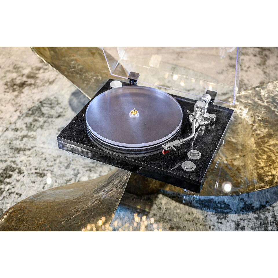 – это новый флагманский проигрыватель виниловых пластинок, который оснащен балансным выходом фонокорректора для головок звукоснимателей типа MC. У него многослойное гибридное шасси из синтетического мрамора, японской традиционной бумаги «Washi» и MDF, а также 9-дюймовый S-образный универсальный тонарм с подшипником ножевого типа.