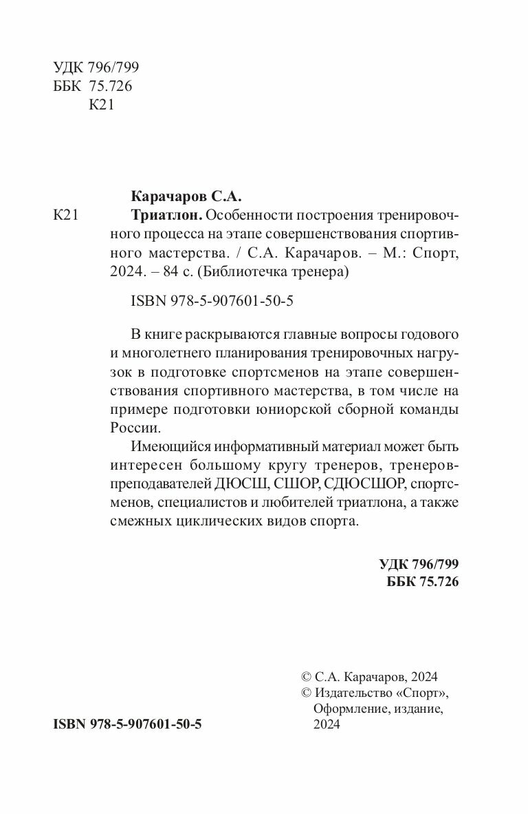 Триатлон. Особенности построения тренировочного процесса (Сергей Анатольевич Карачаров); Спорт, 2024