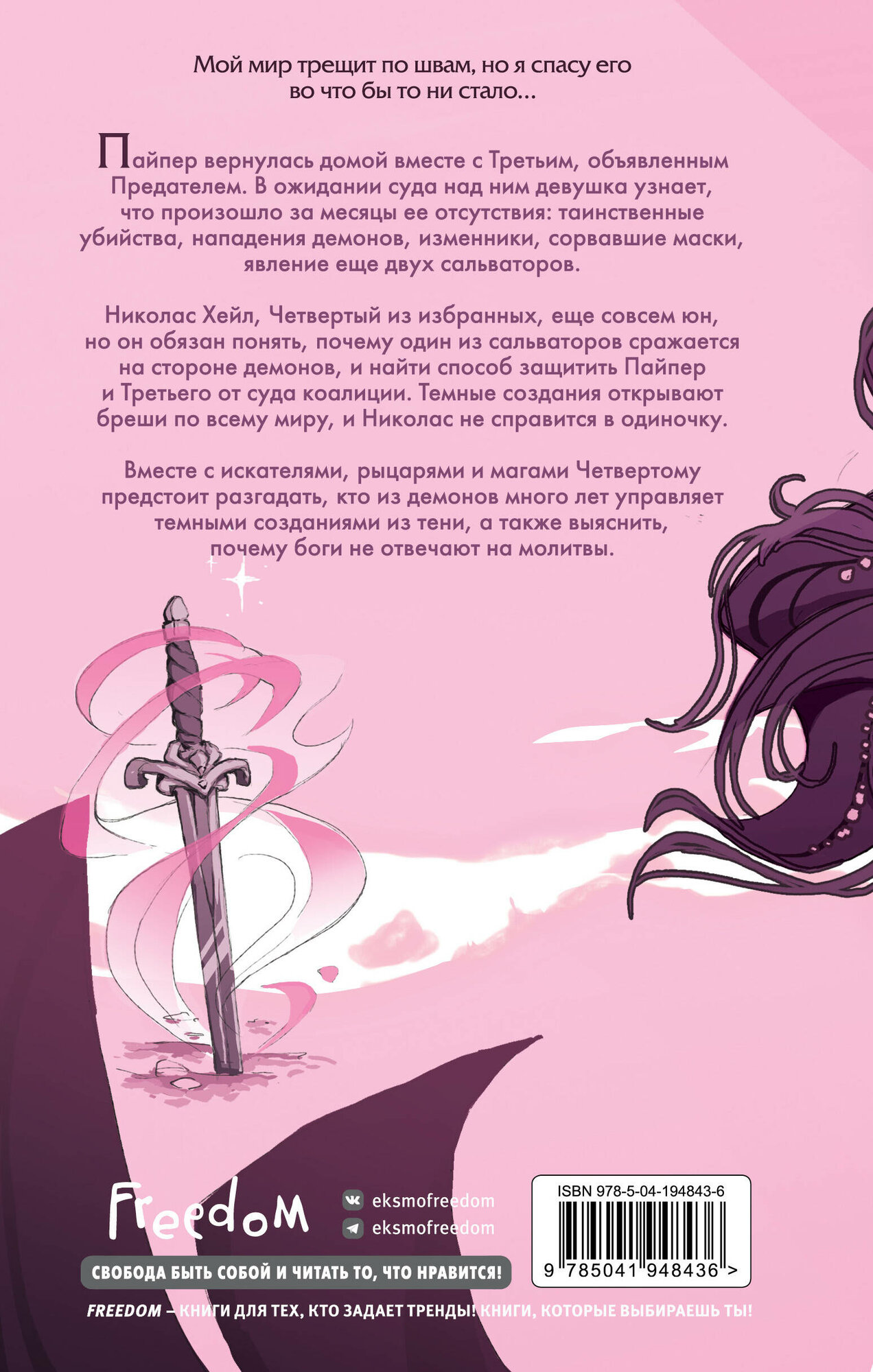 Пайпер вернулась домой вместе с Третьим, объявленным Предателем. В ожидании суда над ним девушка узнает, что произошло за месяцы ее отсутствия: таинственные убийства, нападения демонов, изменники, сорвавшие маски, явление еще двух сальваторов. Николас Хейл, Четвертый из избранных, еще совсем юн, но он обязан понять, почему один из сальваторов сражается на стороне демонов, и найти способ защитить Пайпер и Третьего от суда коалиции. Темные создания открывают бреши по всему миру, и Николас не справится в одиночку. Вместе с искателями, рыцарями и магами Четвертому предстоит разгадать, кто из демонов много лет управляет темными созданиями из тени, а также выяснить, почему боги не отвечают на молитвы.