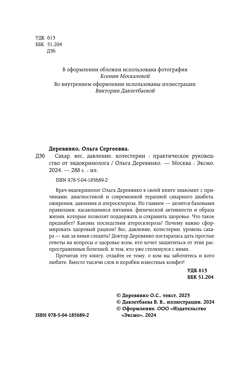 Забота о здоровье. Практическое руководство от эндокринолога о сахаре холестерине весе и давлении (Деревянко Ольга Сергеевна); ООО "Издательство "Эксмо", 2024