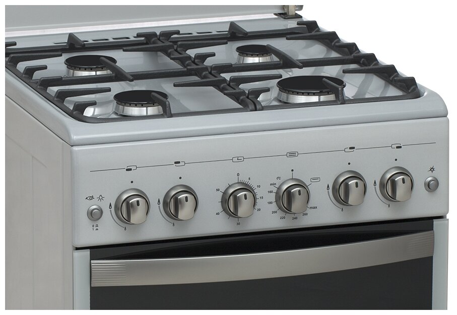 Пользоваться этой газовой плитой очень просто благодаря удобному механическому управлению с поворотными переключателями.