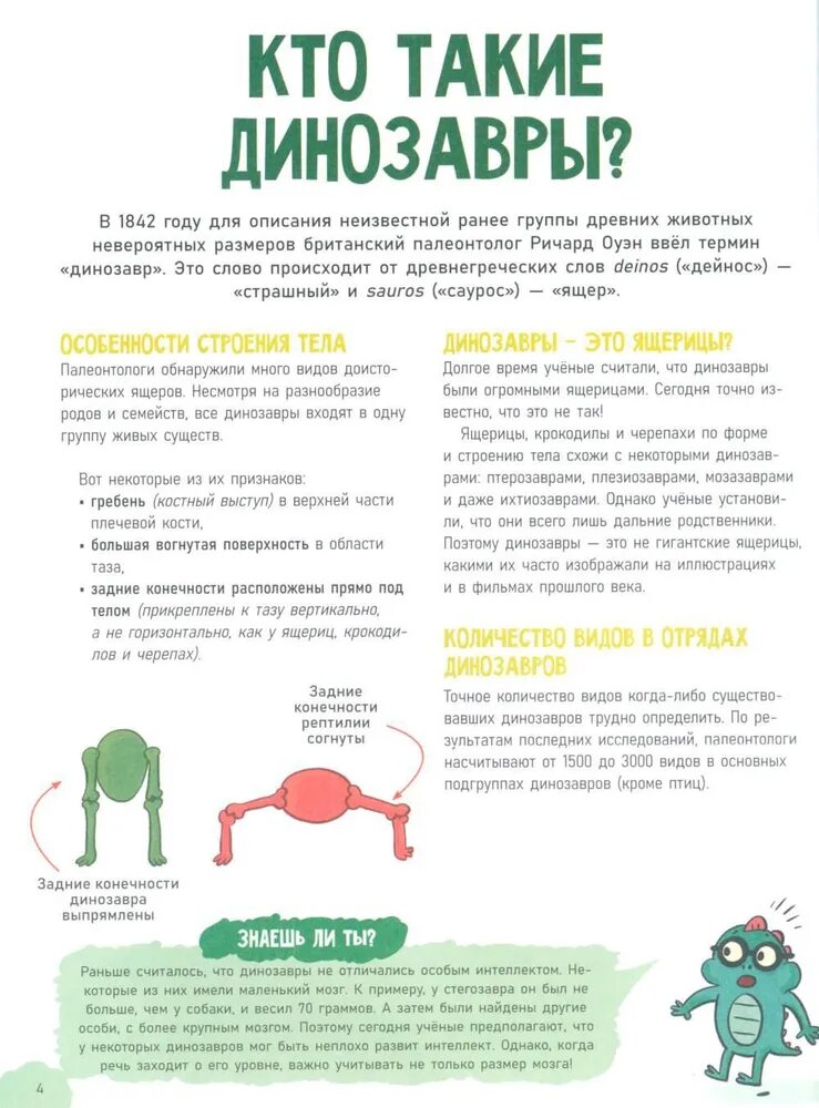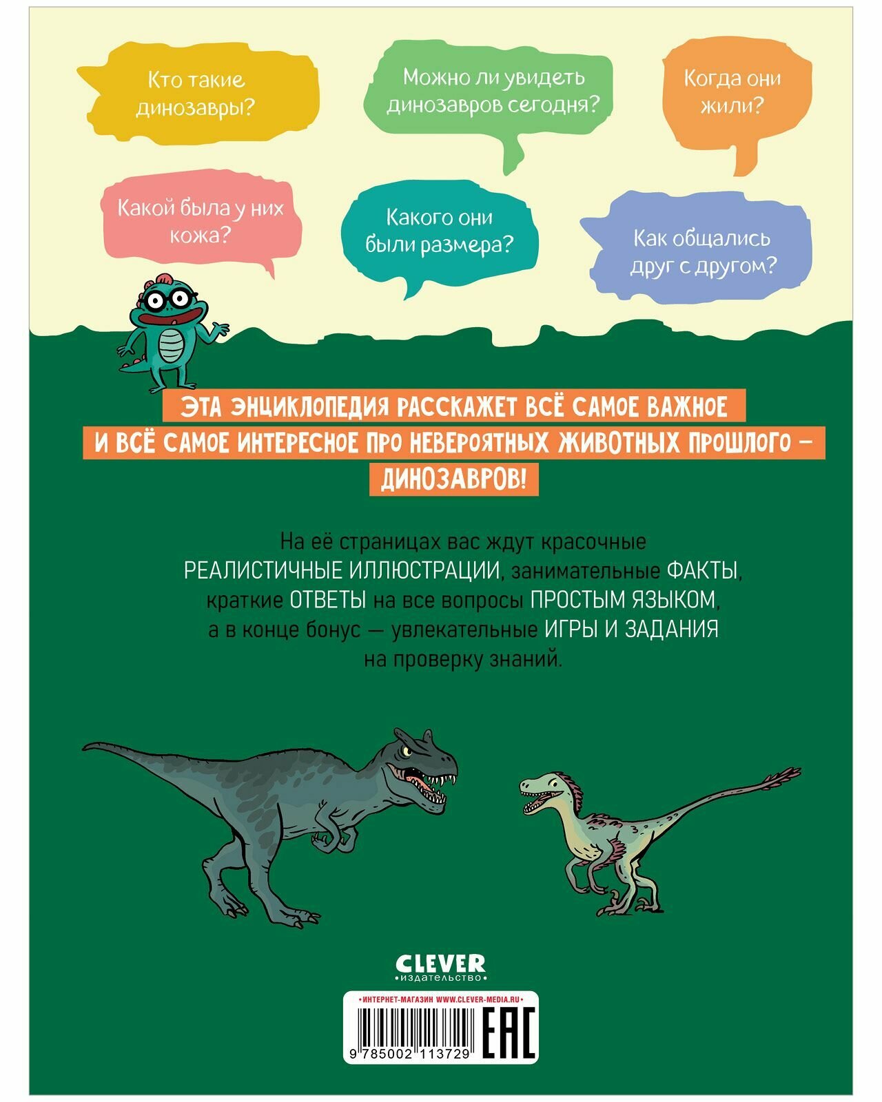 Эта энциклопедия расскажет всё самое важное и всё самое интересное про невероятных животных прошлого - динозавров! На её страницах вас ждут красочные реалистичные иллюстрации, занимательные факты, краткие ответы на все вопросы простым языком, а в конце бонус - увлекательные игры и задания на проверку знаний.