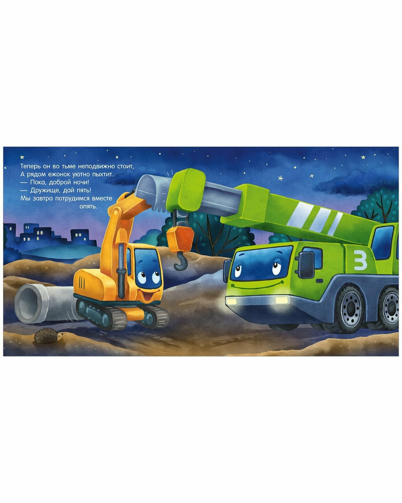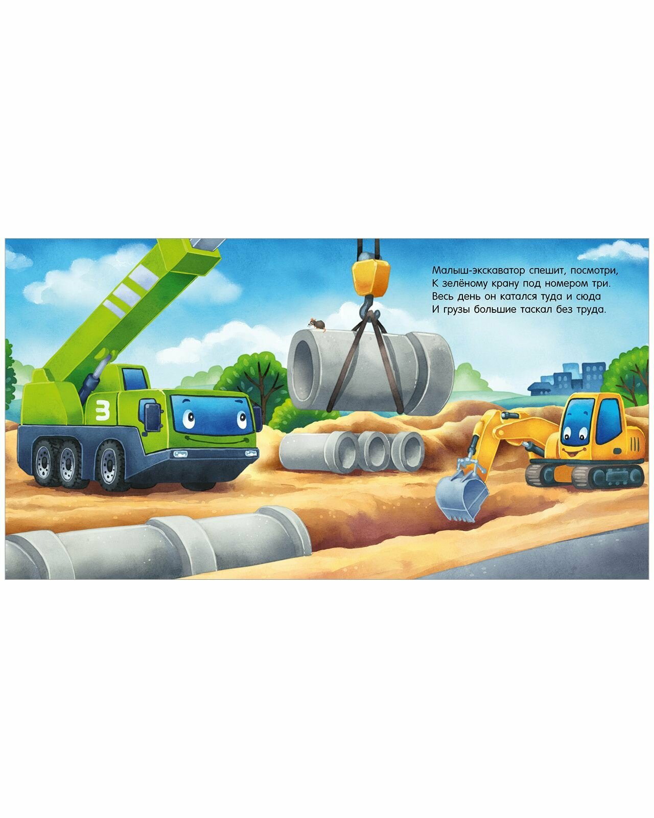 Малыш-экскаватор спешит, посмотри, К зелёному крану под номером три. Весь день он катался туда и сюда И грузы большие таскал без труда! Чудесная история о суматошной стройке, маленьком экскаваторе и его друзьях.
