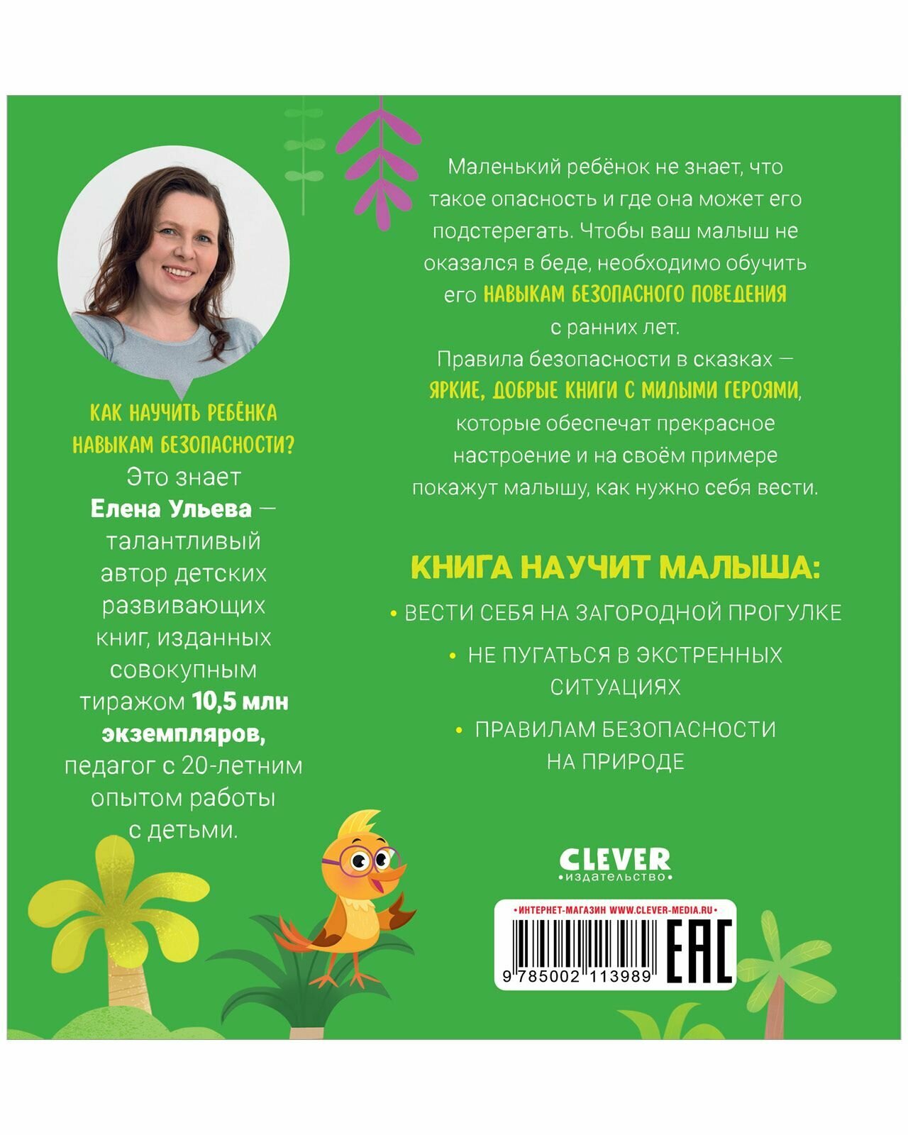 Маленький ребёнок не знает, что такое опасность и где она может его подстерегать. Чтобы ваш малыш не оказался в беде, необходимо обучить его навыкам безопасного поведения с ранних лет. Правила безопасности в сказках - яркие, добрые книги с милыми героями, которые обеспечат прекрасное настроение и на своём примере покажут малышу, как нужно себя вести. Книга научит малыша: • вести себя на загородной прогулке • не пугаться в экстренных ситуациях • правилам безопасности на природе