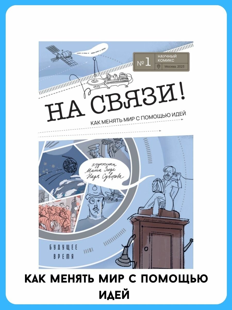 Комикс «На связи!» придумал Фонд «Будущее время», чтобы в музеях разных городов, от Дубны до Ханты-Мансийска, сделать выставки о силе идей. Но после выставок никому не захотелось расставаться с удивительными историями и классными инфографиками, поэтому комикс превратился в книжку. Еще до публикации научный комикс «На связи!» стал лауреатом конкурса «Образ книги».Вы увидите, как рождаются идеи и как коммуникация меняет мир. Убедитесь, что изобретения всегда имеют и неожиданные последствия – например, появление телефона открыло женщинам новые возможности для работы. Узнаете, как изобретения связаны друг с другом – без атомных часов и радио не было бы спутниковой навигации. Познакомитесь с изобретателями и проследите, как неожиданные вещи подталкивают их к новым идеям. И научитесь замечать изобретения, которые помогают поддерживать связи между людьми в повседневной жизни.