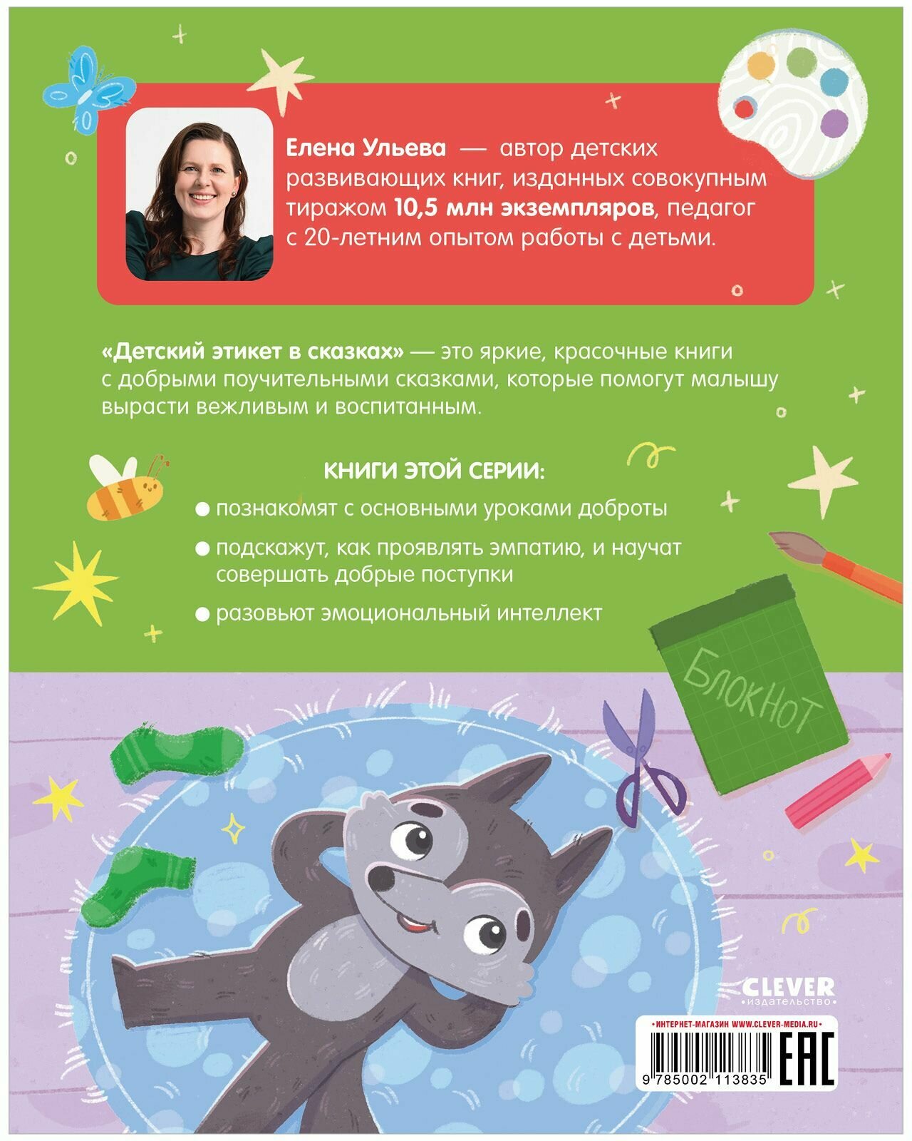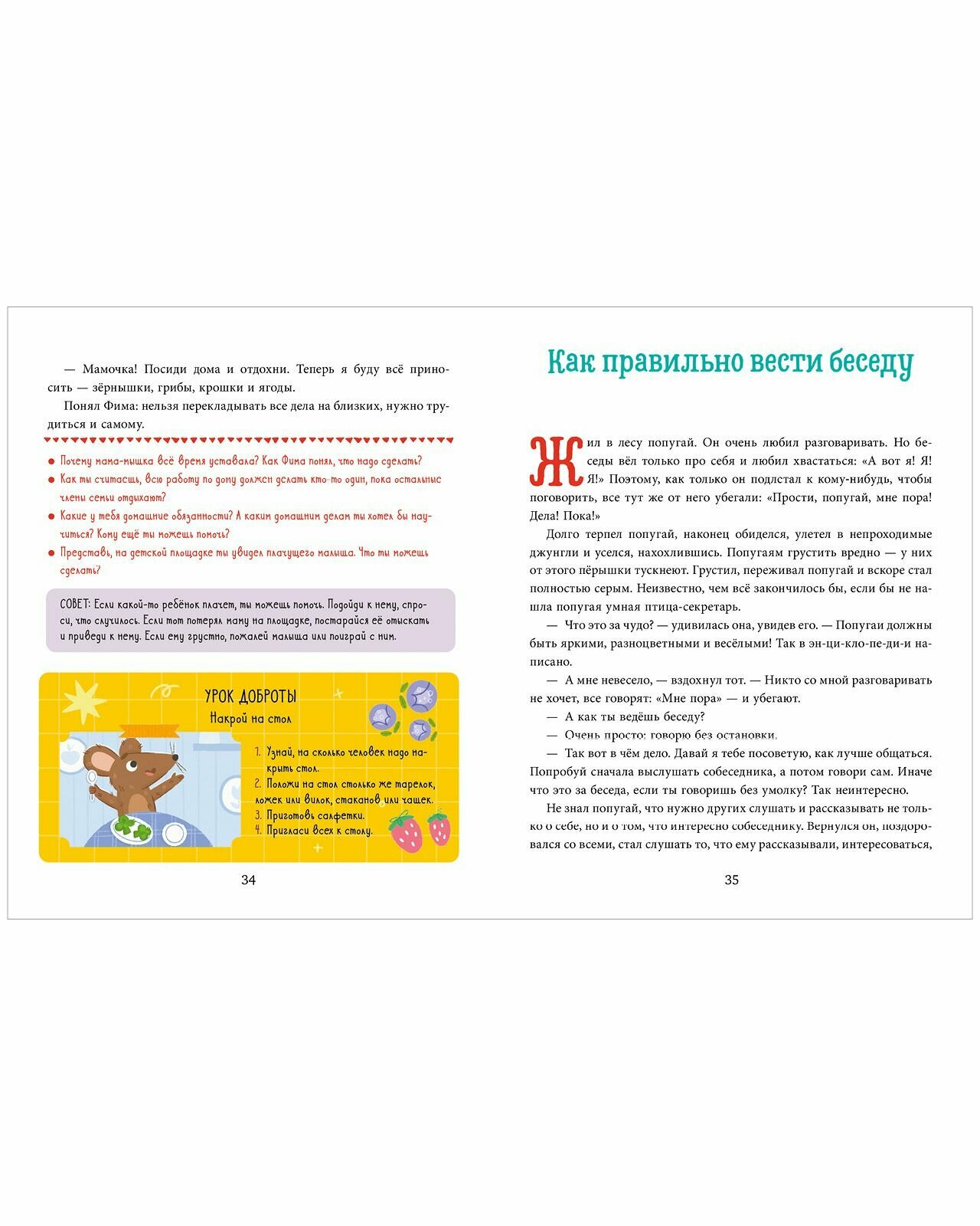 "Детский этикет в сказках" - это яркие, красочные книги с добрыми поучительными сказками, которые помогут малышу вырасти вежливым и воспитанным. Книги этой серии: • познакомят с основными уроками доброты • подскажут, как проявлять эмпатию, и научат совершать добрые поступки • разовьют эмоциональный интеллект