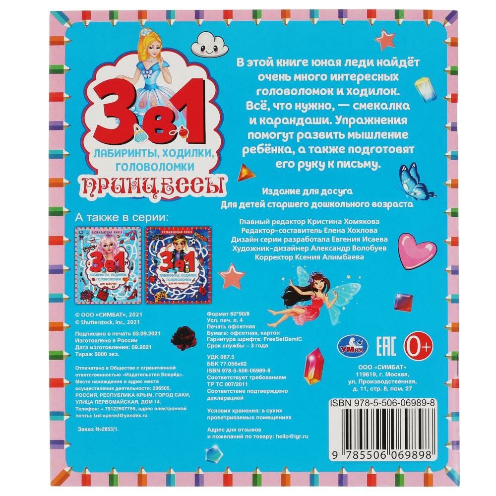 Книга Принцессы. 3 в 1: Лабиринты ходилки головоломки. 215х250 мм 32 (Группа авторов); УМка, 2024