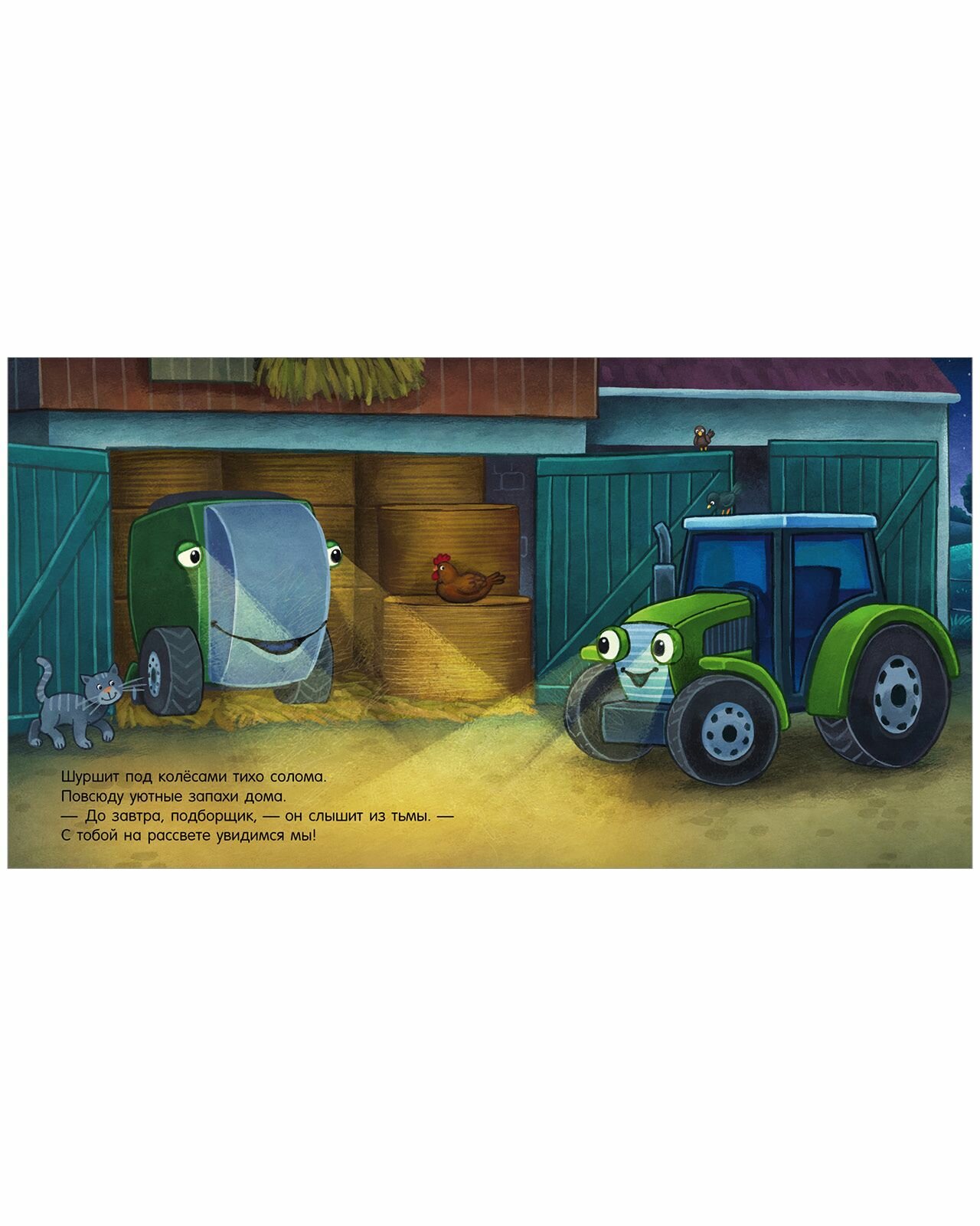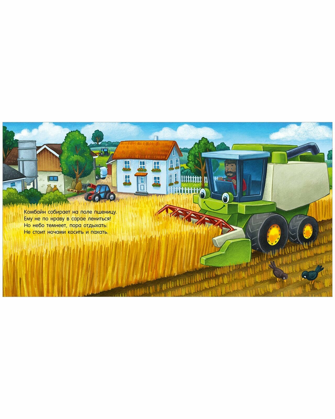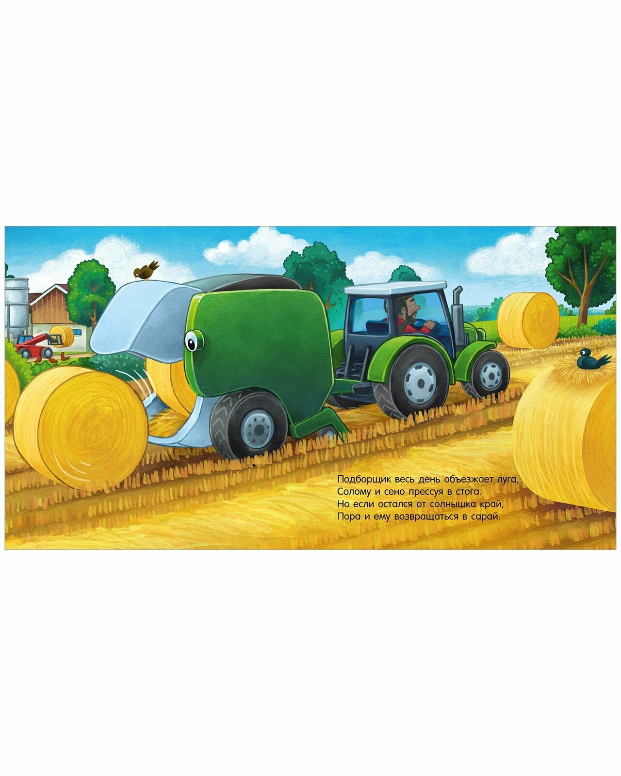 С утра просыпаются шумно машины,Шуршат по дорожкам тяжёлые шины, И фыркает трактор, во двор выезжая: - Ура, наконец?то сезон урожая! Весёлая история о тракторе и неутомимых машинках-помощниках.