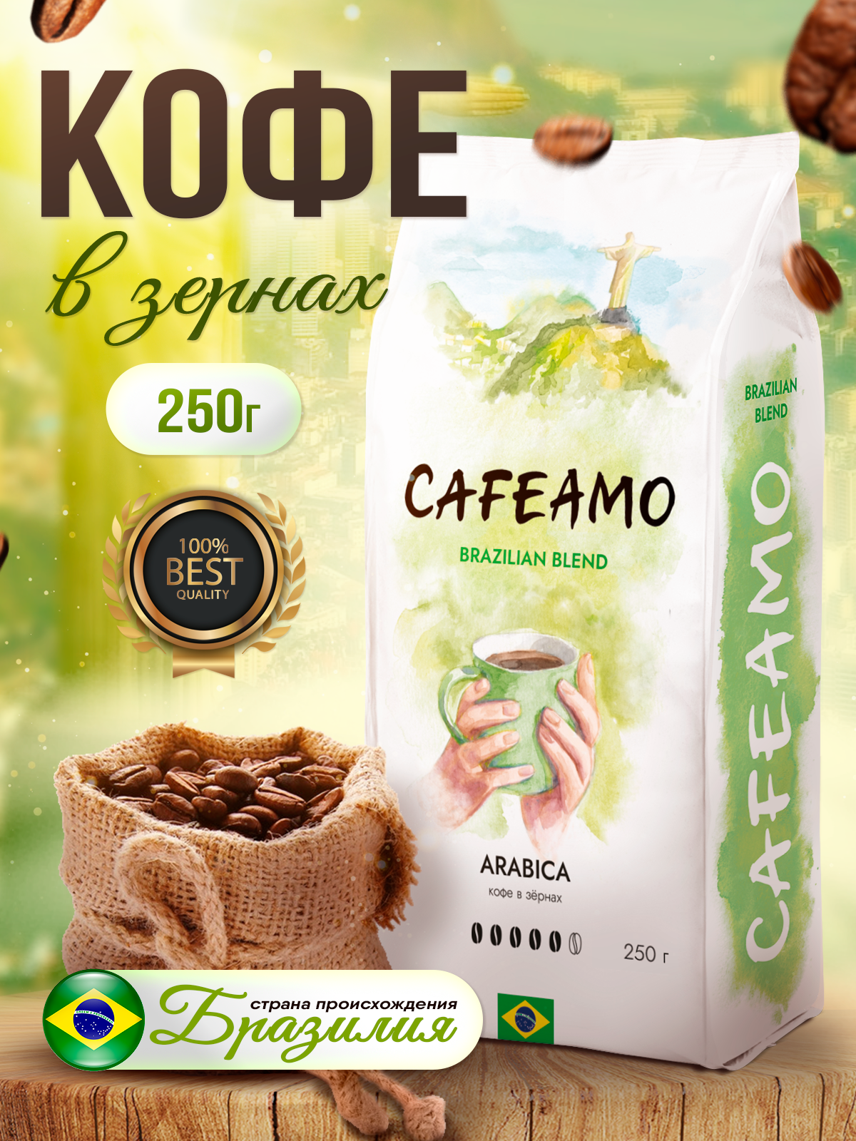 Кофе в зернах Cafeamo Бразилия 250 г