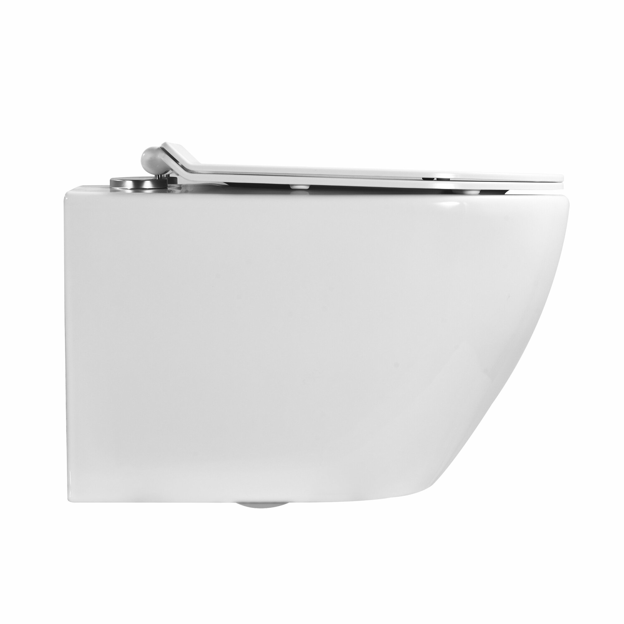 Высококачественный подвесной безободковый овальный унитаз BOND Oval F01-10Long c увеличенной длиной имеет стильный дизайн и отлично смотрится в современном интерьере ванной комнаты. Он изготовлен из сантехнического фарфора, покрытого утолщенным слоем стекловидной глазури, которая защищает изделие от скапливания бактерий и выцветания, придает блеск поверхности и обеспечивает очень легкий уход за ним. Внешняя обтекаемая форма унитаза не позволяет накапливаться пыли, а внутренняя безободковая гарантирует простой уход и отсутствие неприятных запахов. Быстросъемное сиденье сделано из дюропласта и имеет механизм плавного опускания - микролифт; оно очень легко снимается, позволяя быстро и удобно помыть его. Унитаз имеет большую длину, на нем удобно сидеть, не задевая ничего внутри. Скрытый крепеж обеспечивает эстетический внешний вид. И, конечно же, смывая все необходимое с первого раза, он будет радовать Вас долгие годы.