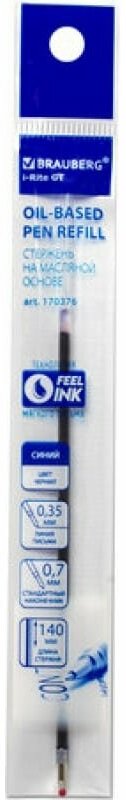 Стержень шариковый масляный BRAUBERG 07 мм синий 140 мм