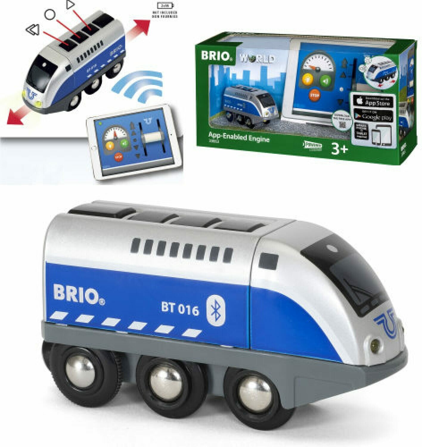| Описание | Современный локомотив железной дороги BRIO способен сам ездить по рельсам. Самый интересный способ управления паровозиком - через мобильное приложение со смартфона или планшета. Для того, чтобы начать управлять паровозиком, необходимо загрузить на планшет мобильное приложение в AppStore или GooglePlay "BRIO App Enabled Engine!". ,,Кроме этого, поездом можно управлять и без использования мобильного приложения. На крыше паровоза находится переключатель направления движения. При движении у паровоза горят огни и он издаёт характерные звуки для паровоза, который тянет тяжело гружёный состав. |