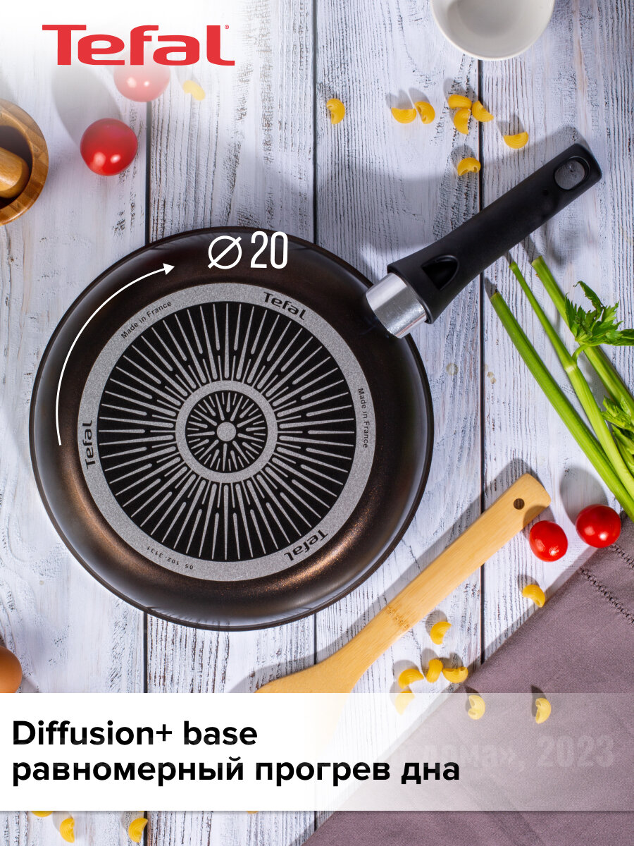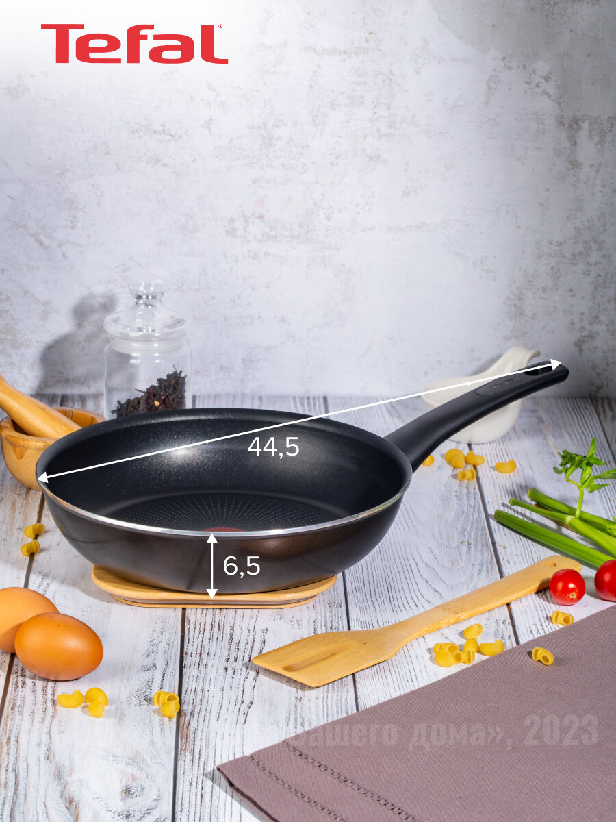 Сковорода 22 см антипригарная - незаменимая помощница на кухне. Эта сковорода является важным инструментом на кухне и подходит для приготовления различных блюд, включая блины, оладьи, яичницу и многое другое. Благодаря своему антипригарному покрытию, сковорода предотвращает прилипание продуктов и облегчает процесс готовки. Она глубокая и маленькая в размере, что делает ее подходящим атрибутом для приготовления завтраков и тушения овощей. В ней можно приготовить много интересных блюд: соусы, тушеное мясо и десерты. Сверхпрочное антипригарное покрытие отличается особой износостойкостью и превосходными антипригарными свойствами, рассчитано на интенсивное использование в течение длительного срока. Сковородка антипригарная оснащена ручкой, которая обеспечивает удобство и безопасность при использовании инвентаря. Покрытие сковороды выполнено с использованием новейших технологий - Titanium non-stick многослойное антипригарное покрытие, которое выдерживает интенсивное использование. Благодаря этому покрытию, такие сковороды и кастрюли служат очень много лет хозяйкам. Набор кухонной посуды из сковородок tefal универсален. Сковорода антипригарная подходит для использования на всех типах плит, за исключением индукционных. Равномерное и быстрое нагревание дна сковороды достигается благодаря Diffusion+base, которое исключает образование холодных и перегретых участков. Вы можете быть уверены в том, что ваши блюда будут приготовлены на идеальной температуре и будут обладать превосходной текстурой. Функциональность сковороды 22 см антипригарной делают ее отличным выбором для каждого дома и кухни. Она станет идеальным подарком для мужчины и для женщины на годовщину, новый год, день рождения, новоселье. Порадуйте себя и своих близких качественной кухонной посудой. Приобретайте сковороду сегодня и ощутите превосходство комфорта и качества на своей кухне. В нашем ассортименте вы можете найти сковороду с антипригарным покрытием с размерами на 22 см, 24 см, 26 см, 28см.
