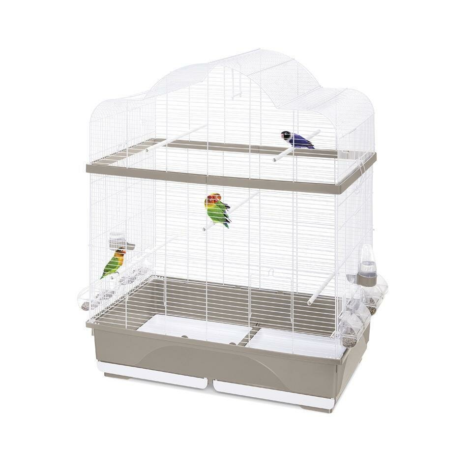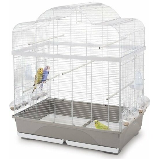 Клетка Ginevra прямоугольной формы c фигурной крышей выполнена из качественных безопасных материалов и предназначена для мелких и средних попугаев.