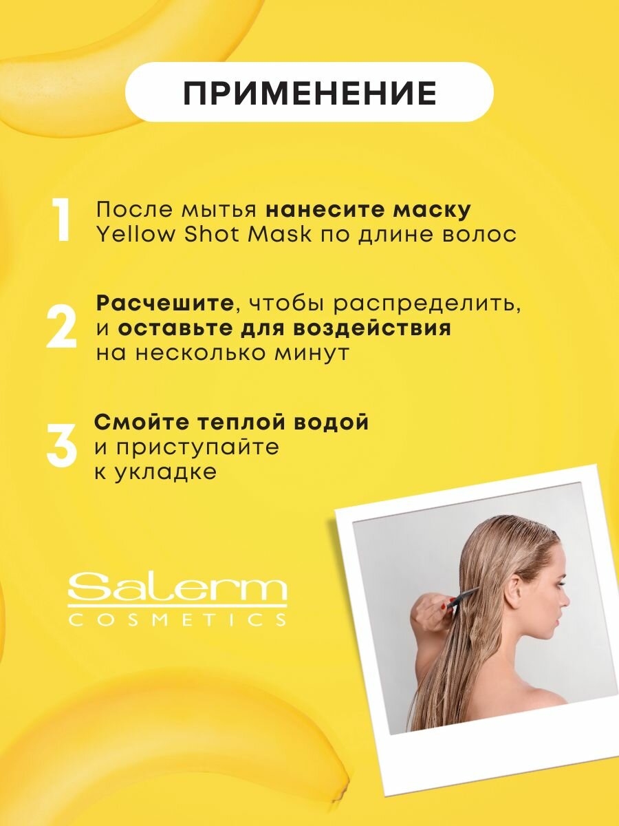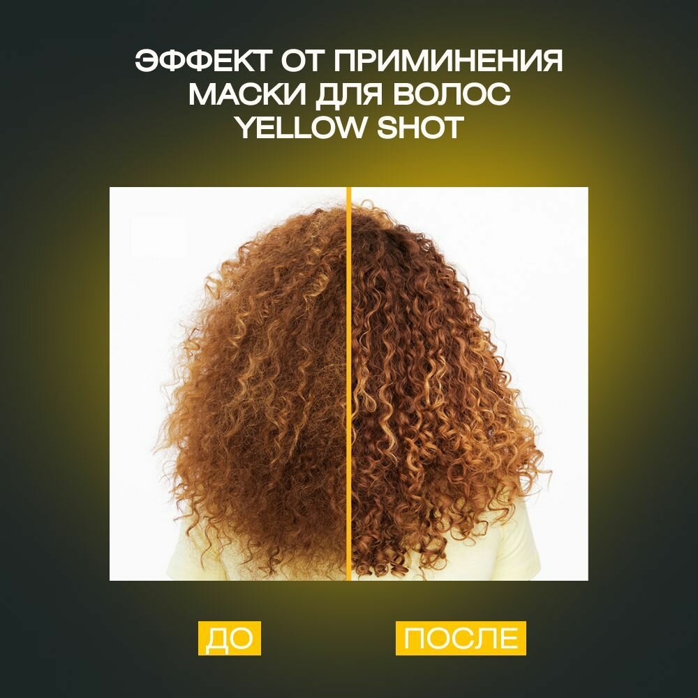 Укрепляющая и питательная маска, рекомендуется для поврежденных волос. Маска Yellow Shot — это интенсивная восстанавливающая и защитная терапия для увлажненных, блестящих и гладких волос. Идеальное дополнение для восстановления и защиты поврежденных и сильно поврежденных волос.СПОСОБ ПРИМЕНЕНИЯПосле мытья нанесите маску Yellow Shot Mask по длине волос. Расчешите, чтобы распределить и оставьте для воздействия на несколько минут. Смойте теплой водой и приступайте к укладке.