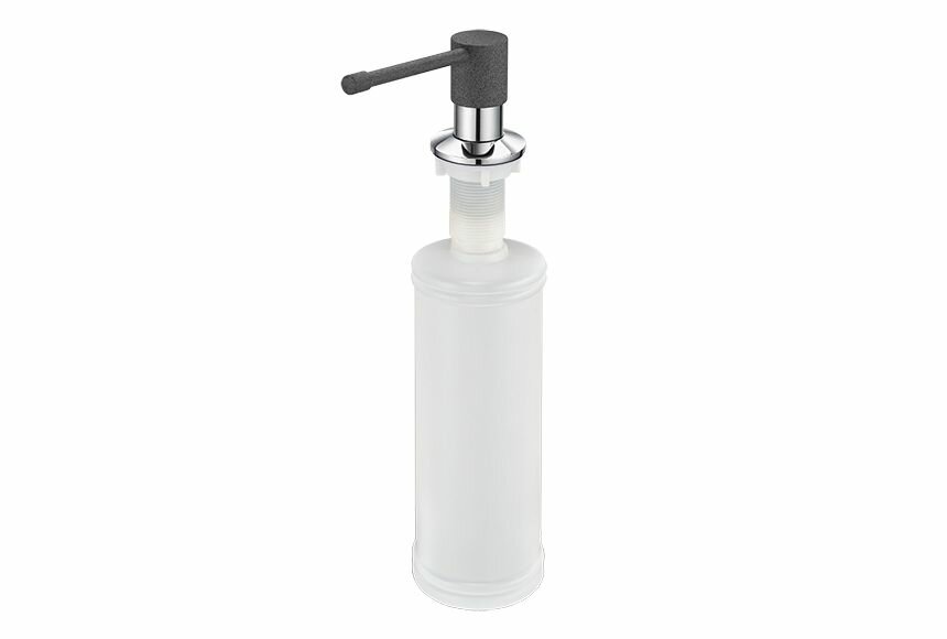 Дозатор для жидкого мыла. Цвет-графит. Легкая установка (25-35 мм коронка). Комплектация: помпа, колба