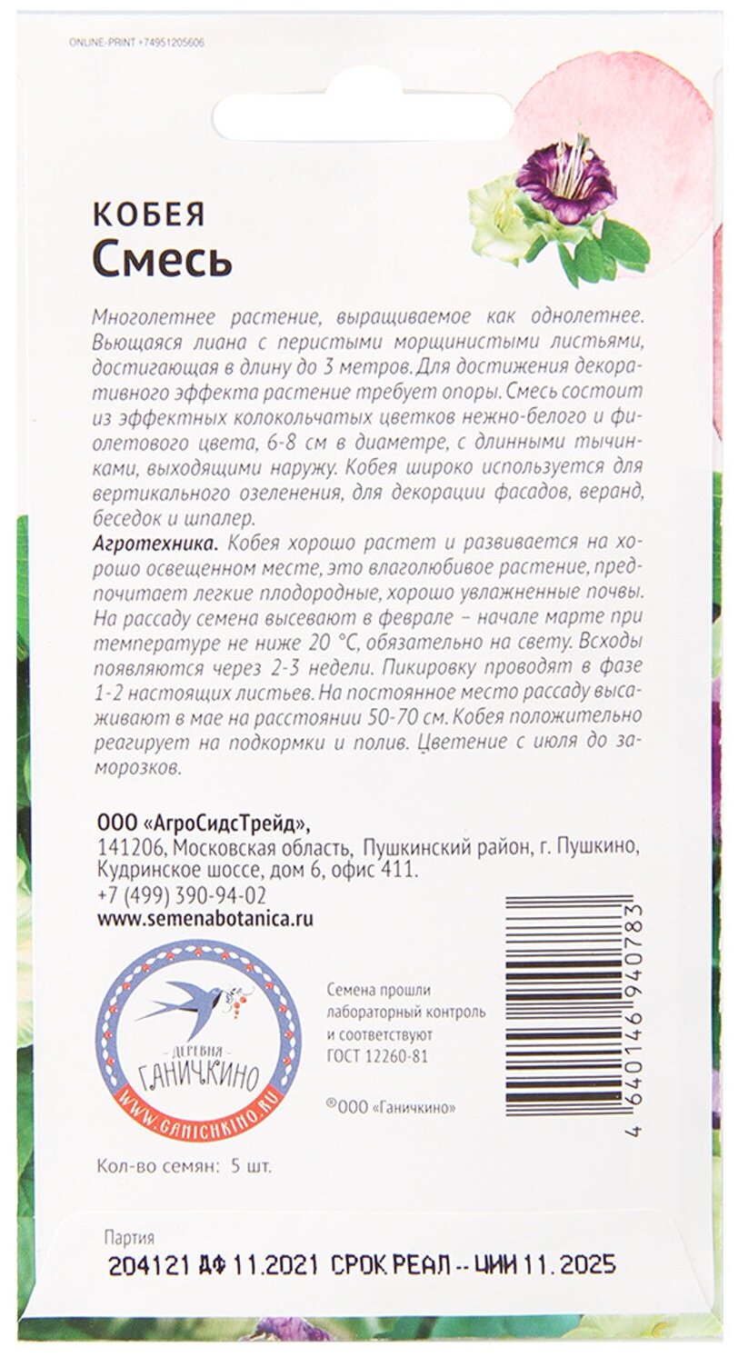 Семена цветов Семена от Октябрины Ганичкиной кобея микс 5 шт.