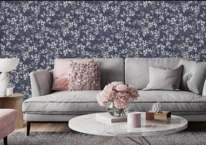 Обои флизелиновые Ateliero Cherry синие 1.06 м AT98929