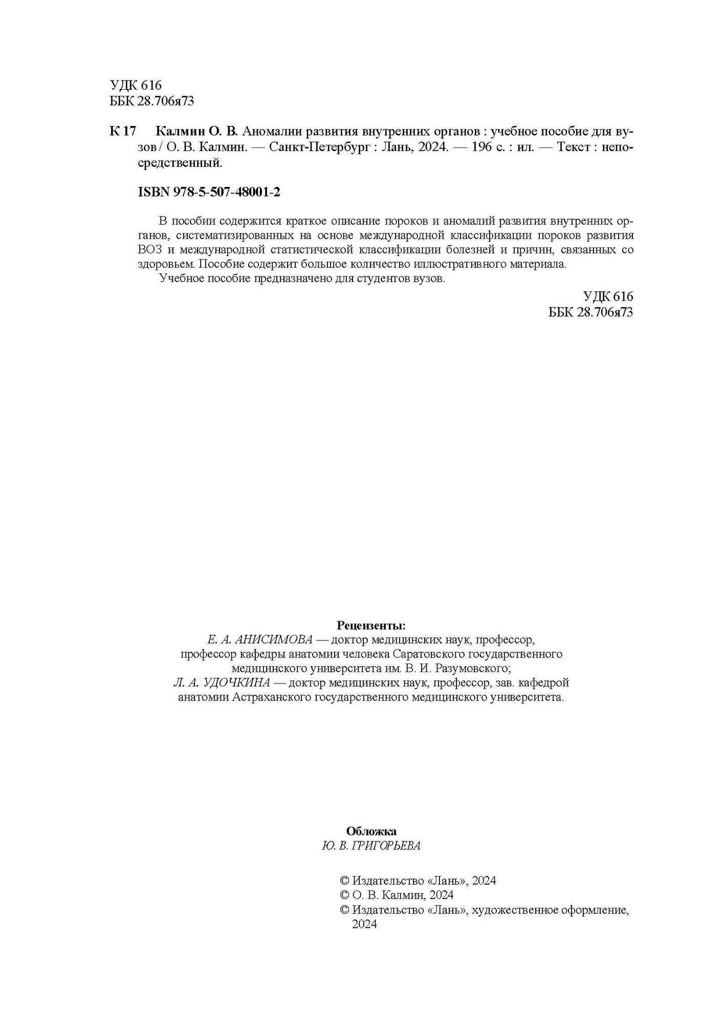 Аномалии развития внутренних органов. Учебное пособие для вузов (О. В. Калмин); Издательство ЛАНЬ, 2024
