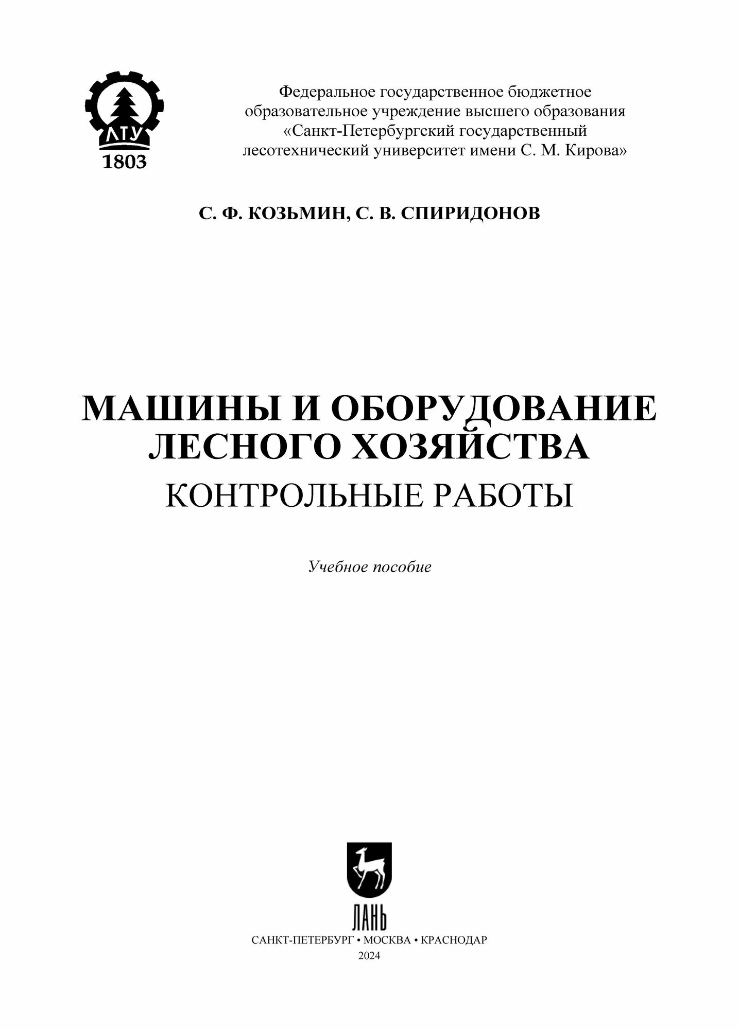 Машины и оборудование лесного хозяйства. Контрольные работы. Учебное пособие для СПО (С. Ф. Козьмин); Издательство ЛАНЬ, 2024