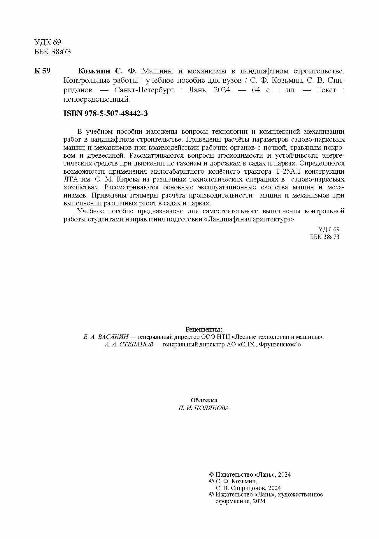 Машины и механизмы в ландшафтном строительстве. Контрольные работы. Учебное пособие для вузов (С. Ф. Козьмин); Издательство ЛАНЬ, 2024