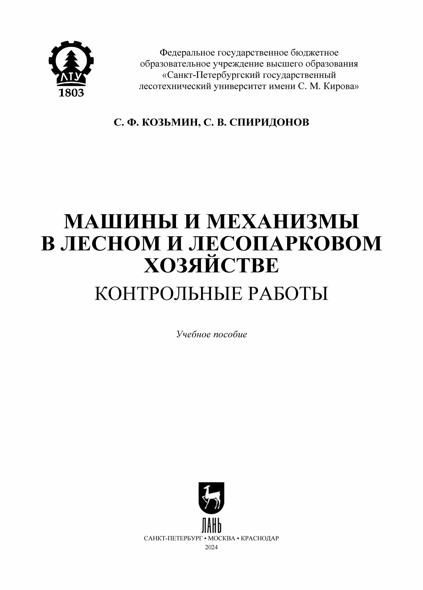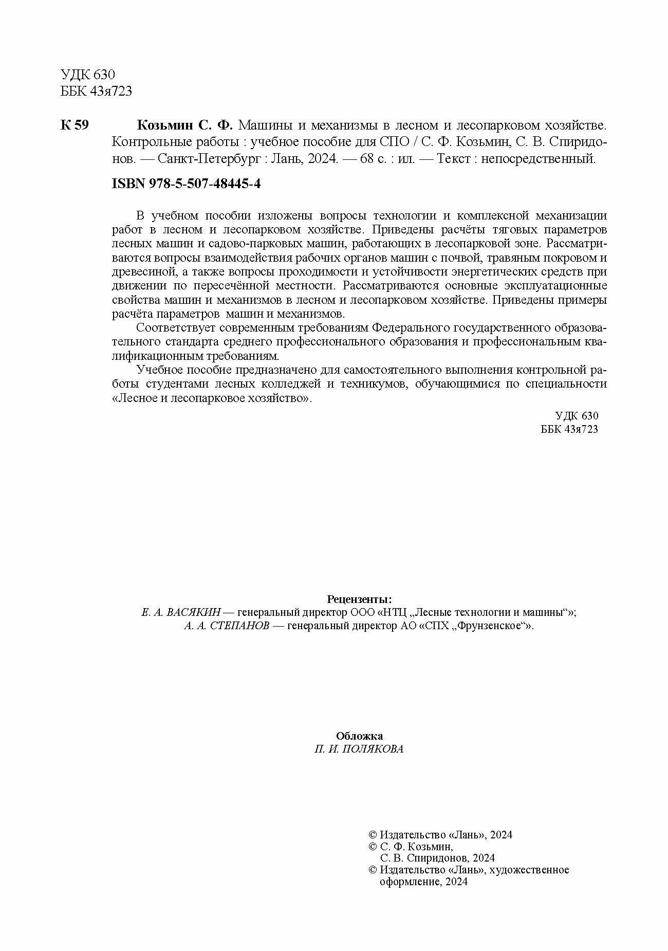 Машины и механизмы в лесном и лесопарковом хозяйстве. Контрольные работы. Учебное пособие для СПО (С. Ф. Козьмин); Издательство ЛАНЬ, 2024