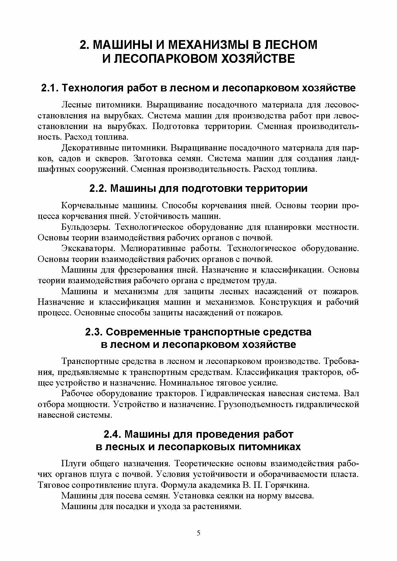 В учебном пособии изложены вопросы технологии и комплексной механизации работ в лесном и лесопарковом хозяйстве. Приведены расчеты тяговых параметров лесных машин и садово-парковых машин, работающих в лесопарковой зоне. Рассматриваются вопросы взаимодействия рабочих органов машин с почвой, травяным покровом и древесиной, а также рассматриваются вопросы проходимости и устойчивости энергетических средств при движении по пересеченной местности. Рассматриваются основные эксплуатационные свойства машин и механизмов в лесном и лесопарковом хозяйстве. Приведены примеры расчета параметров машин и механизмов. Учебное пособие предназначено для самостоятельного выполнения контрольной работы студентами направления подготовки "Лесное дело".