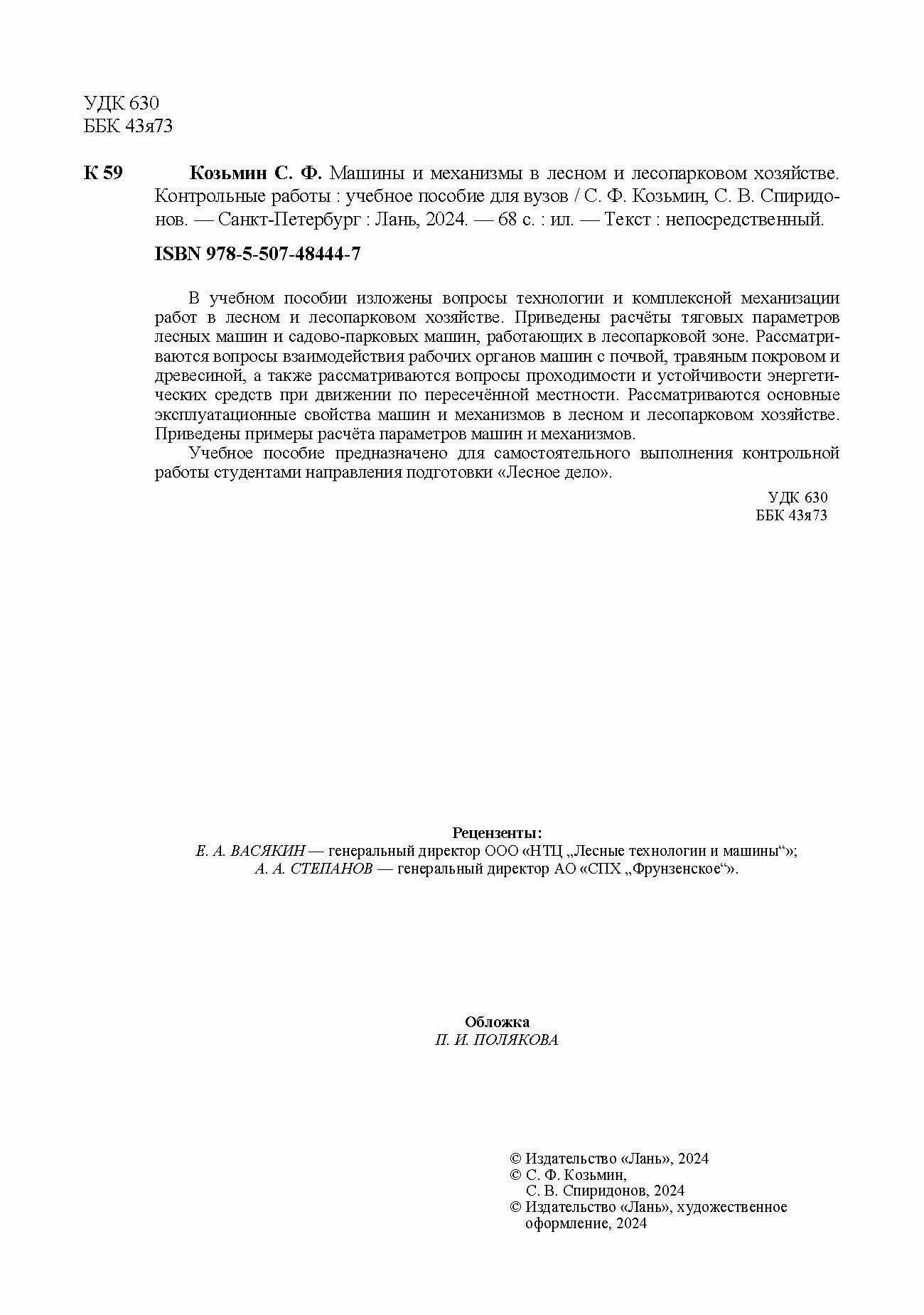 Машины и механизмы в лесном и лесопарковом хозяйстве. Контрольные работы. Учебное пособие для вузов (С. Ф. Козьмин); Издательство ЛАНЬ, 2024