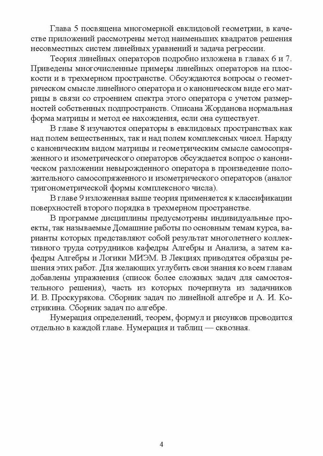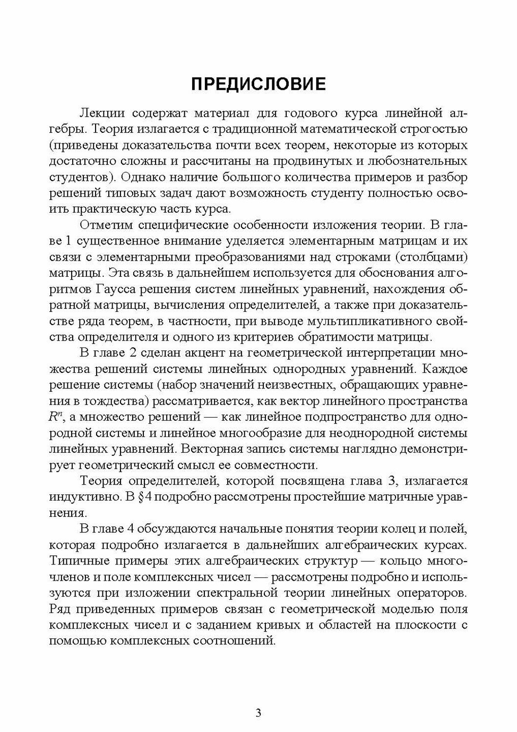 Перед вами учебное пособие по линейной алгебре, который возник в результате обработки, расширения и углубления годового курса, читаемого автором в течение ряда лет для студентов МИЭМ НИУ ВШЭ, обучающихся по программе Компьютерная безопасность. Изложение материала базируется, во-первых, на традиции преподавания линейной алгебре на кафедре алгебры и анализа (а в последствии на кафедре Алгебры и Логики) МИЭМ. Речь идет о сочетании математической строгости изложения теории с алгоритмизацией процесса решения различных алгебраических задач, что позволяет большинству студентов успешно справляться с практическими заданиями. Во-вторых, в курсе последовательно проводится взгляд на линейную алгебру, как на многомерную геометрию. Это позволяет использовать геометрическую интуицию и трехмерные геометрические модели для демонстрации наглядного смысла абстрактных алгебраических понятий и доказательств различных теорем. В курсе представлены решения многочисленных примеров, которые традиционно разбираются на семинарах. Может быть использовано в качестве учебного пособия для студентов средних профессиональных учреждений. Соответствует современным требованиям Федерального государственного образовательного стандарта среднего профессионального образования и профессиональным квалификационным требованиям.