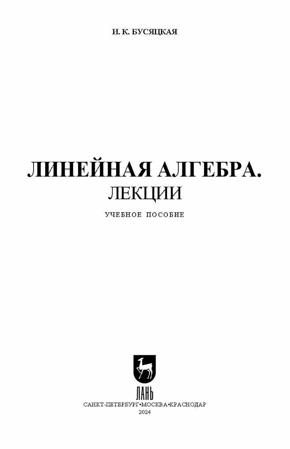 Линейная алгебра. Лекции. Учебное пособие для СПО (И. К. Бусяцкая); Издательство ЛАНЬ, 2024