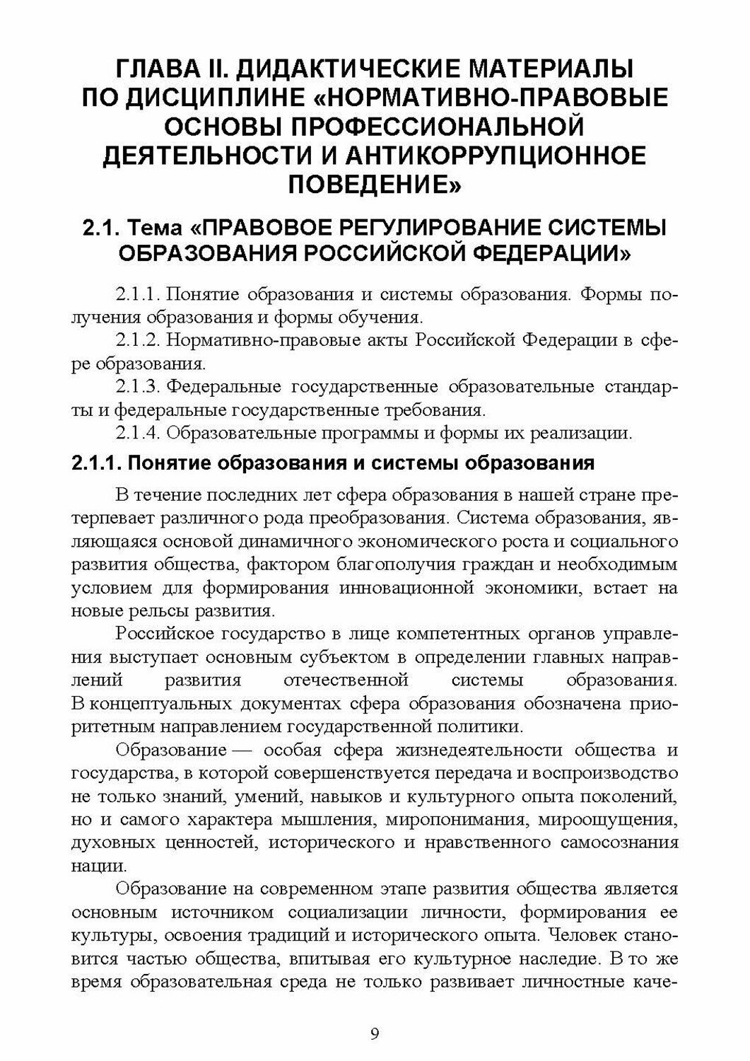 Настоящее пособие предназначено для проведения лекционных и практических занятий со студентами по учебной дисциплине "Нормативно-правовые основы профессиональной деятельности и антикоррупционное поведение". В нем раскрываются наиболее важные теоретические и практические вопросы дисциплины, отражены роль и задачи образования в современном обществе, затронуты правовые основы охраны прав обучающихся, рассмотрены вопросы правового статуса педагогических работников и противодействия коррупционному поведению. Пособие может использоваться не только для аудиторной, но и самостоятельной работы. Кроме того, в нем представлены различные формы оценочных средств, рассчитанных как на выявление изначального уровня знаний обучающегося, так и на последующий контроль их повышения. Издание предназначено для студентов, обучающихся по направлению подготовки "Педагогическое образование", магистрантов, аспирантов педагогических вузов и практических работников образования. 2-е издание, переработанное и дополненное.