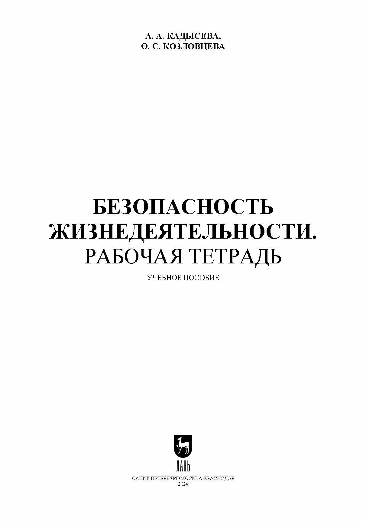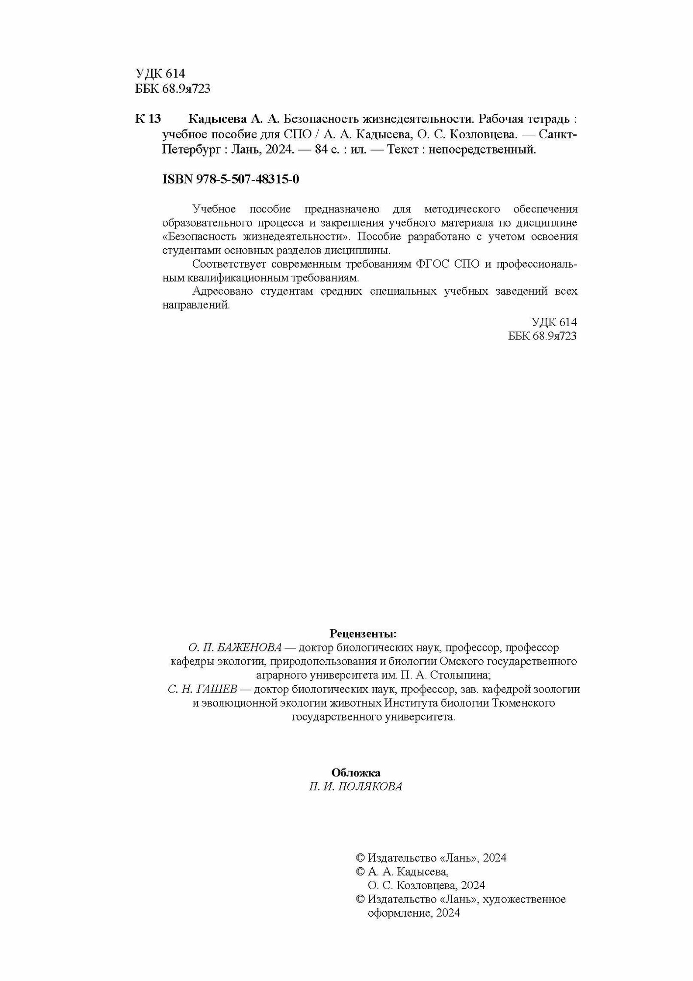 Безопасность жизнедеятельности. Рабочая тетрадь. Учебное пособие для СПО (А. А. Кадысева); Издательство ЛАНЬ, 2024