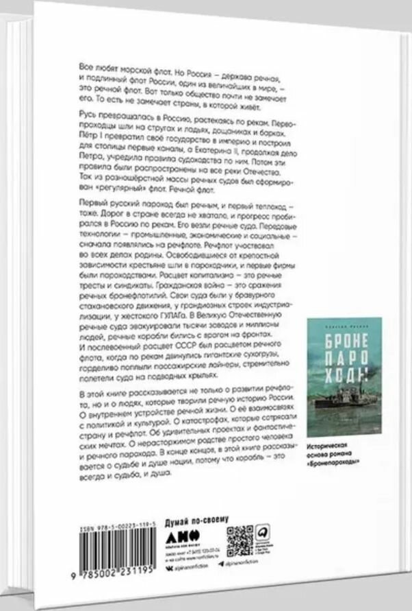 Все любят морской флот. Но Россия — держава речная, и подлинный флот России, один из величайших в мире, — это речной флот. Вот только общество почти не замечает его. То есть не замечает страны, в которой живет. Русь превращалась в Россию, растекаясь по рекам. Первопроходцы шли на стругах и ладьях, дощаниках и барках. Петр I превратил свое государство в империю и построил для столицы первые каналы, а Екатерина II, продолжая дело Петра, учредила на них правила судоходства. Потом эти правила были распространены на все реки Отечества. Так из разношерстной массы речных судов был сформирован «регулярный» флот. Речной флот.В этой книге рассказывается не только о развитии речфлота, но и о людях, которые творили речную историю России. О внутреннем устройстве речной жизни. О ее взаимосвязях с политикой и культурой. О катастрофах, которые сотрясали страну и речфлот. Об удивительных проектах и фантастических мечтах. О нерасторжимом родстве простого человека и речного парохода. В конце концов, в этой книге рассказывается о судьбе и душе нации, потому что корабль — это всегда и судьба, и душа.