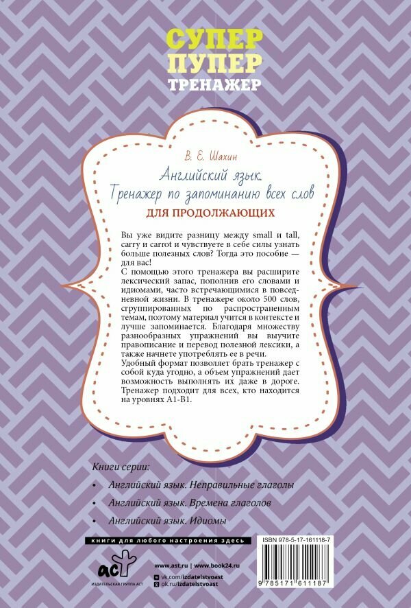 Английский язык. Тренажер по запоминанию всех слов для продолжающих (В. Е. Шахин); Издательство АСТ, 2024
