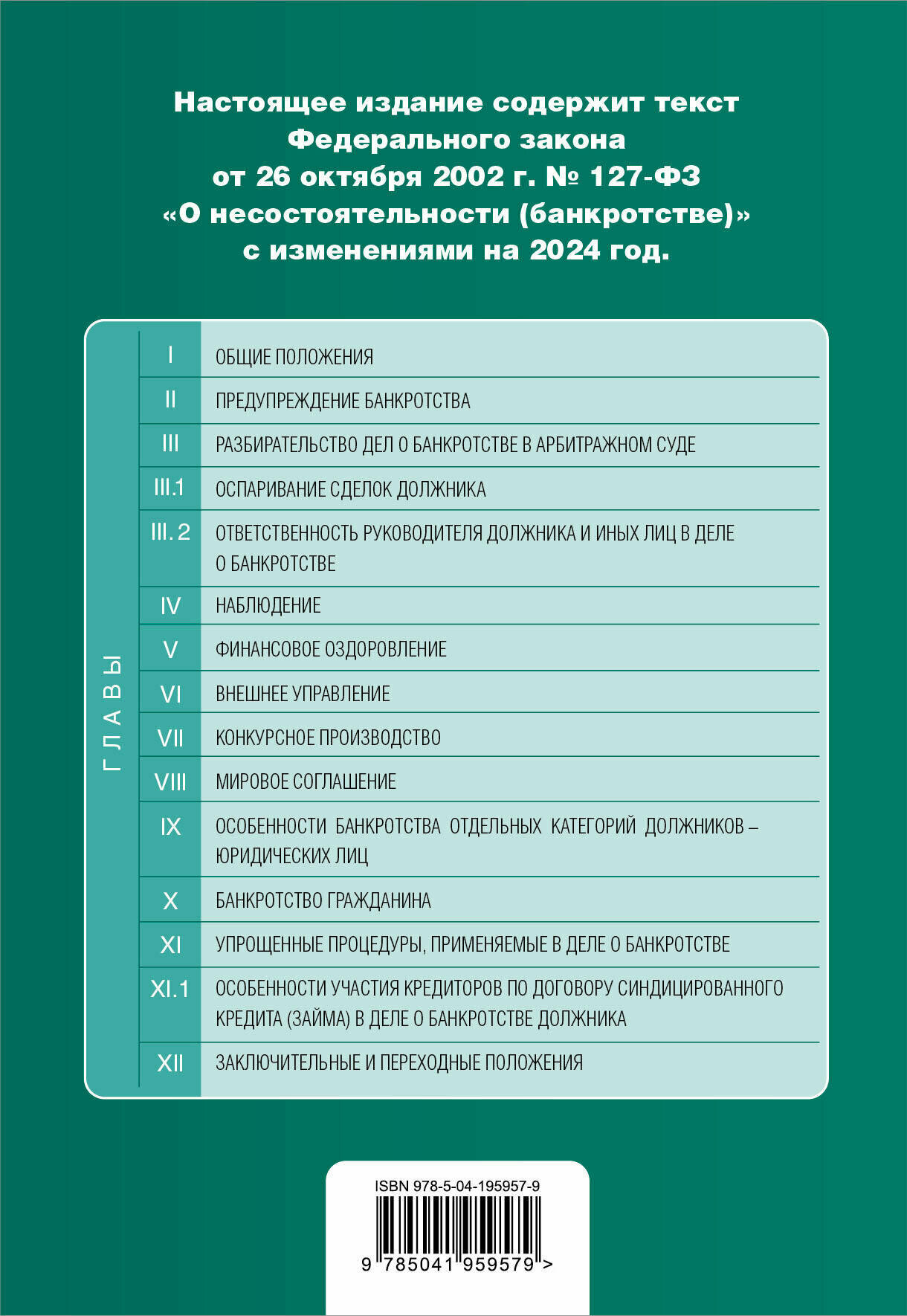 ФЗ "О несостоятельности (банкротстве)". В ред. на 2024 / ФЗ №127-ФЗ (без автора); ООО "Издательство "Эксмо", 2024