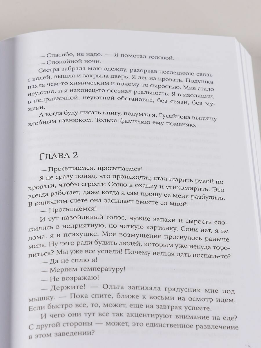 Новая книга лауреата премий «НОС» и «Новые горизонты» — это роман о писателе. Чтобы добиться художественной достоверности книги, над которой работает, и правдоподобно описать пребывание в психиатрической клинике, он имитирует психическое расстройство. Но попасть в клинику оказывается гораздо проще, чем выйти из нее.