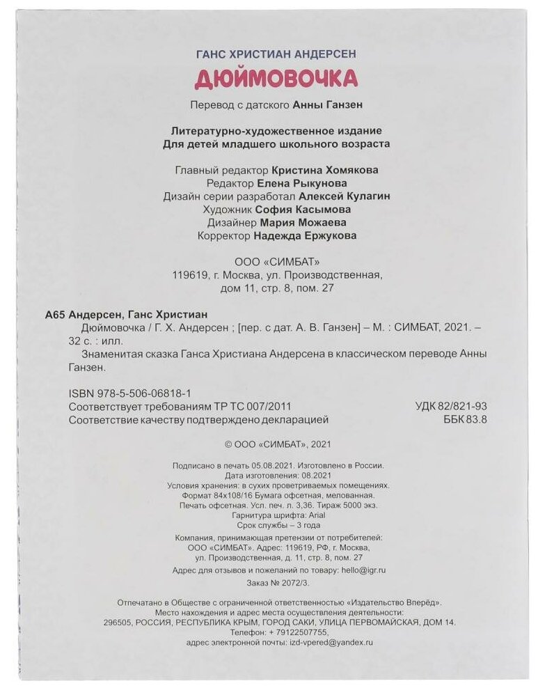 Книга: Книга Дюймовочка (Андерсен Г. Х.), 2021