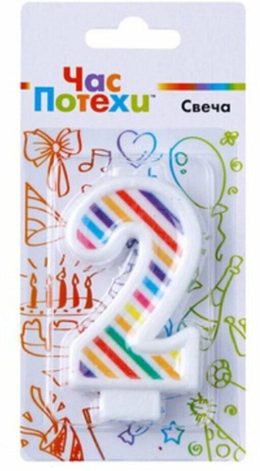 На сегодняшний день товар «Свеча Час потехи цифра 2 полосы разноцветные 7 см» можно купить с кешбеком в 1 магазине: Яндекс.Маркет
