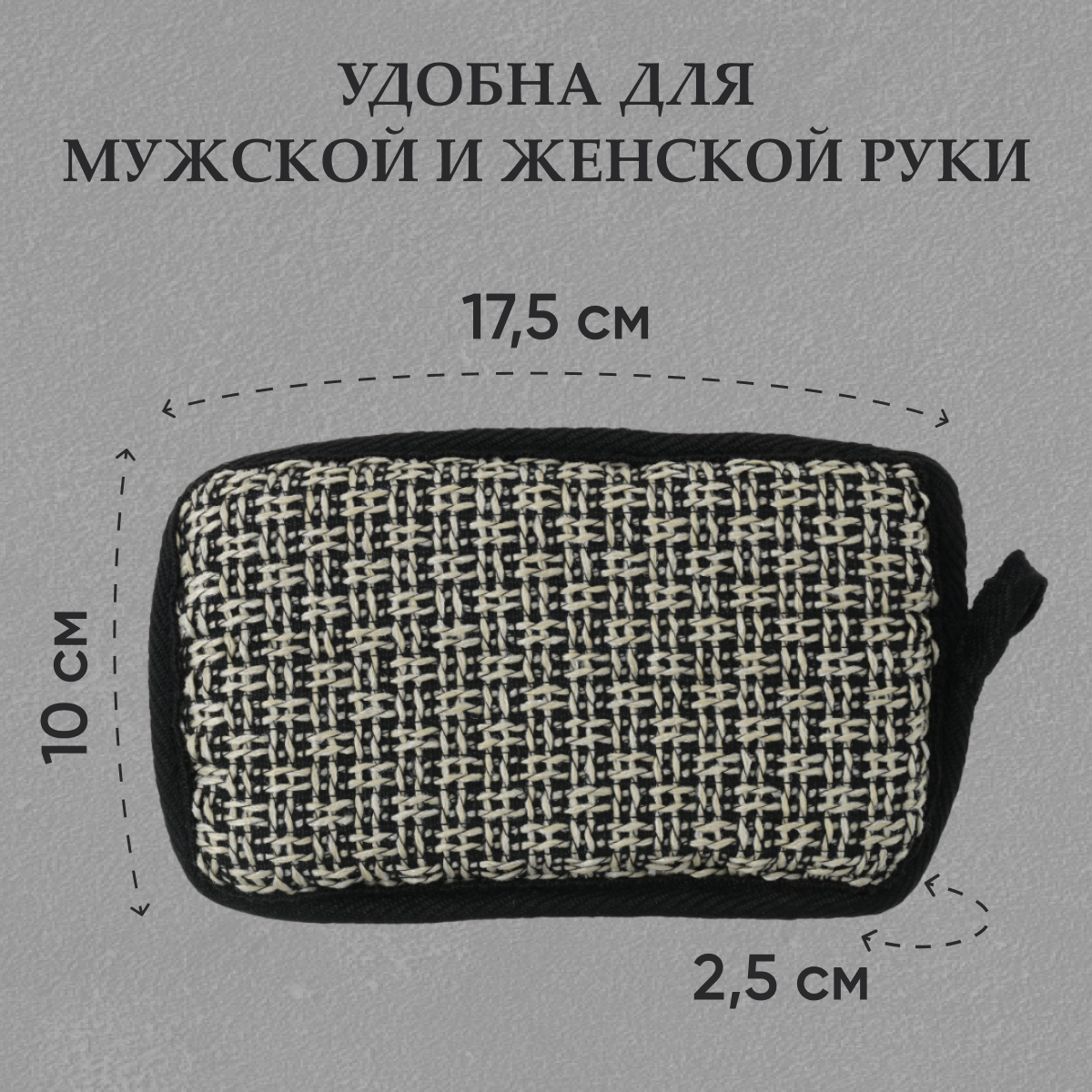 Размер 10х17,5х2,5 см. Мочалки коллекции "Мозаика" - стильное и практичное сочетание натуральных и синтетических материалов. Благодаря особому плетению сторона с черно-белым узором обеспечивает массажный эффект, а сторона с мягким плетением отвечает за бережное очищение. Двусторонние мочалки подойдут покупателям с нормальной, чувствительной и комбинированной кожей. А оригинальный дизайн прекрасно дополнит интерьер ванной комнаты.