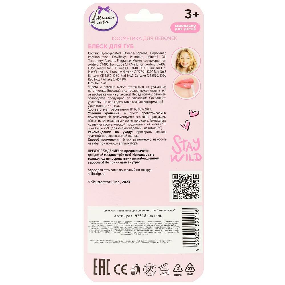 Косметика для девочек Милая леди блеск для губ розовый 2 мл