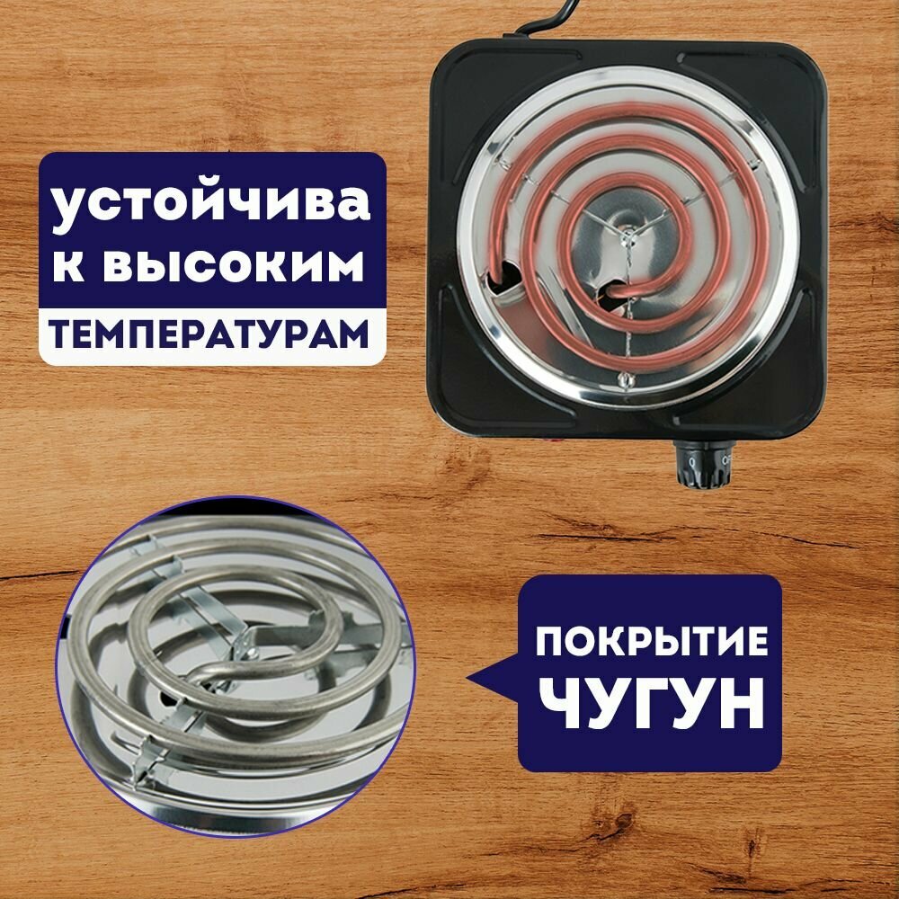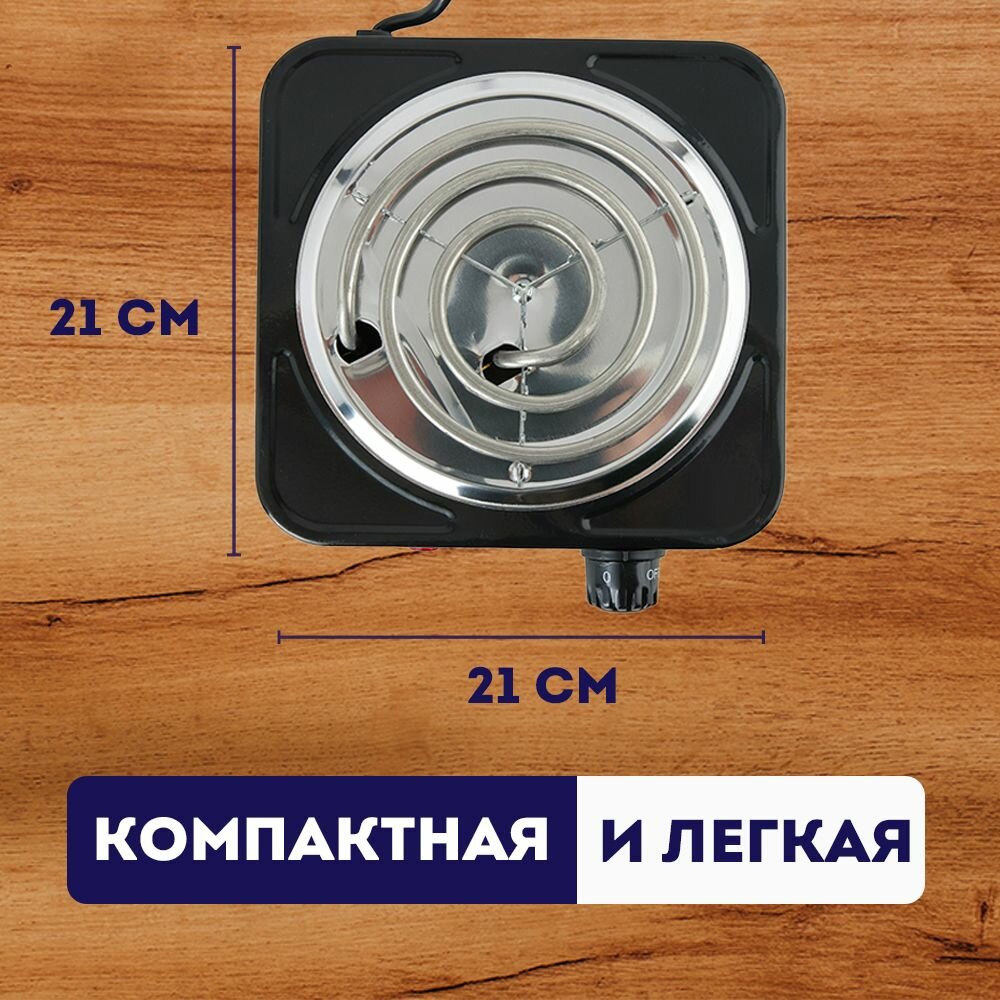 Одной из особенностей этой электрической плитки является удобная регулировка нагрева. С помощью пятиступенчатого термостата вы легко сможете установить нужный уровень нагрева. Низкая ступень идеальна для поддержания температуры готовой пищи, а максимальный нагрев позволяет вскипятить воду в рекордно короткие сроки.