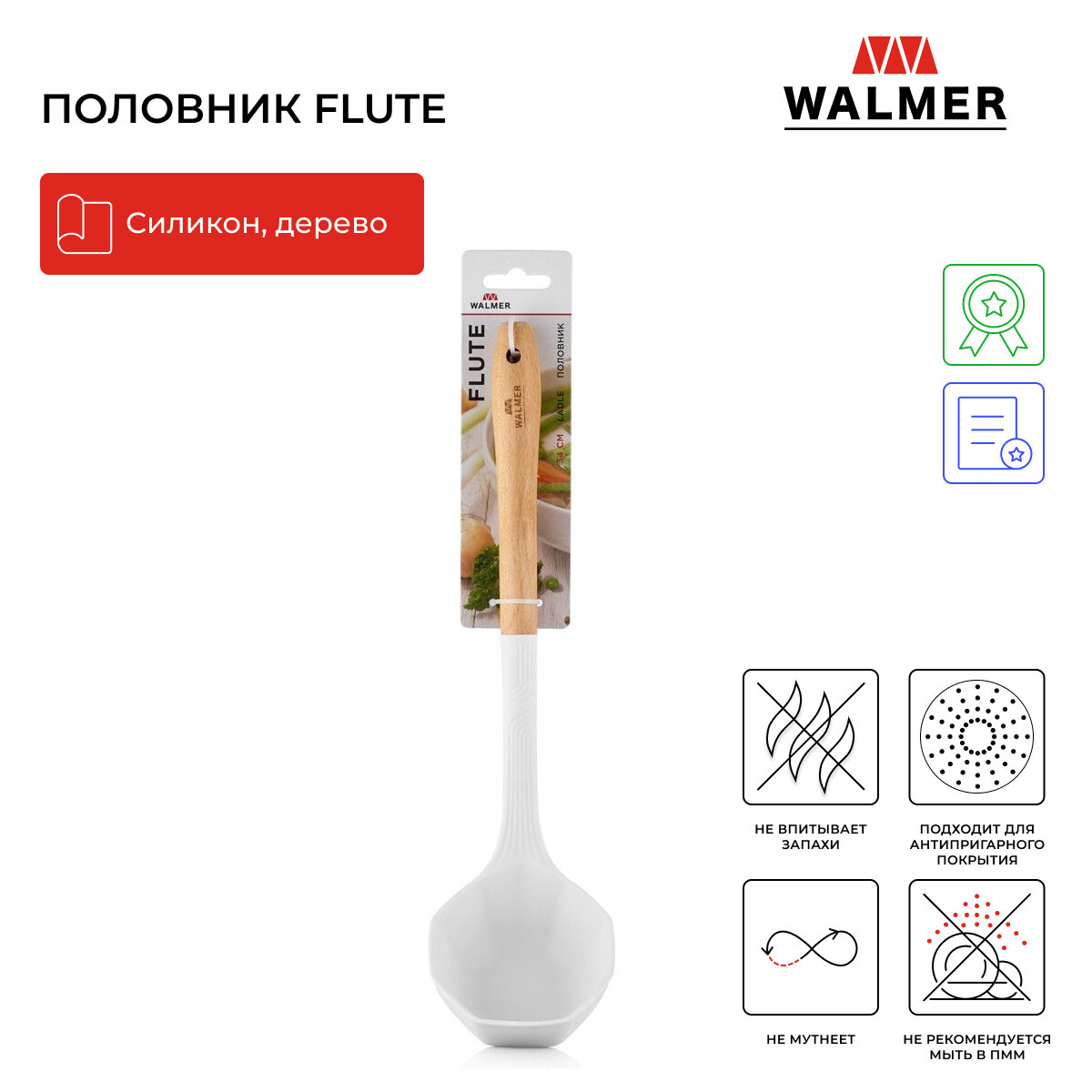 Сервис сравнения цен СкидкаГИД предлагает сравнить цены на товар «половник WALMER Flute 34см силикон дерево (W30027097)»