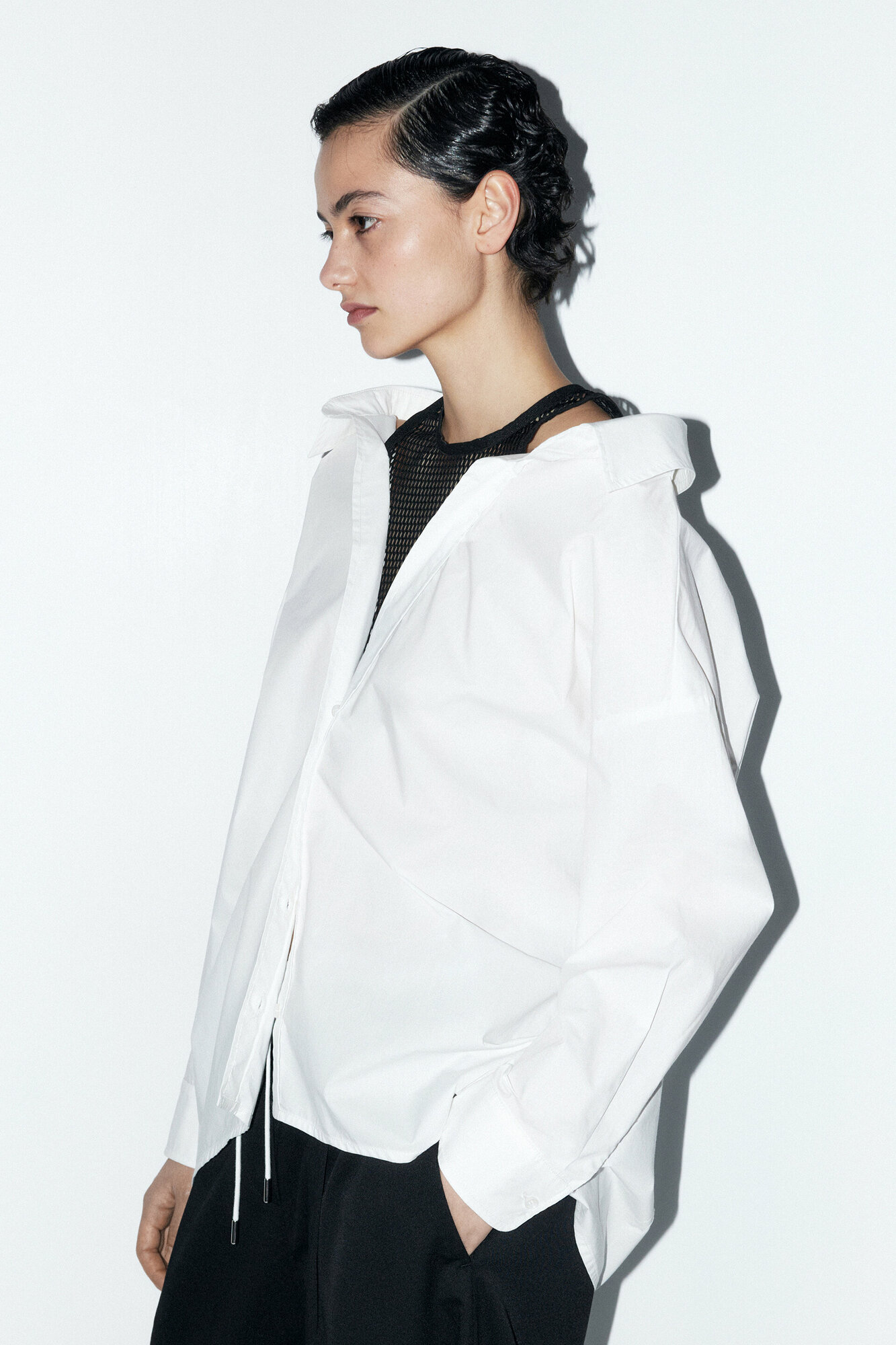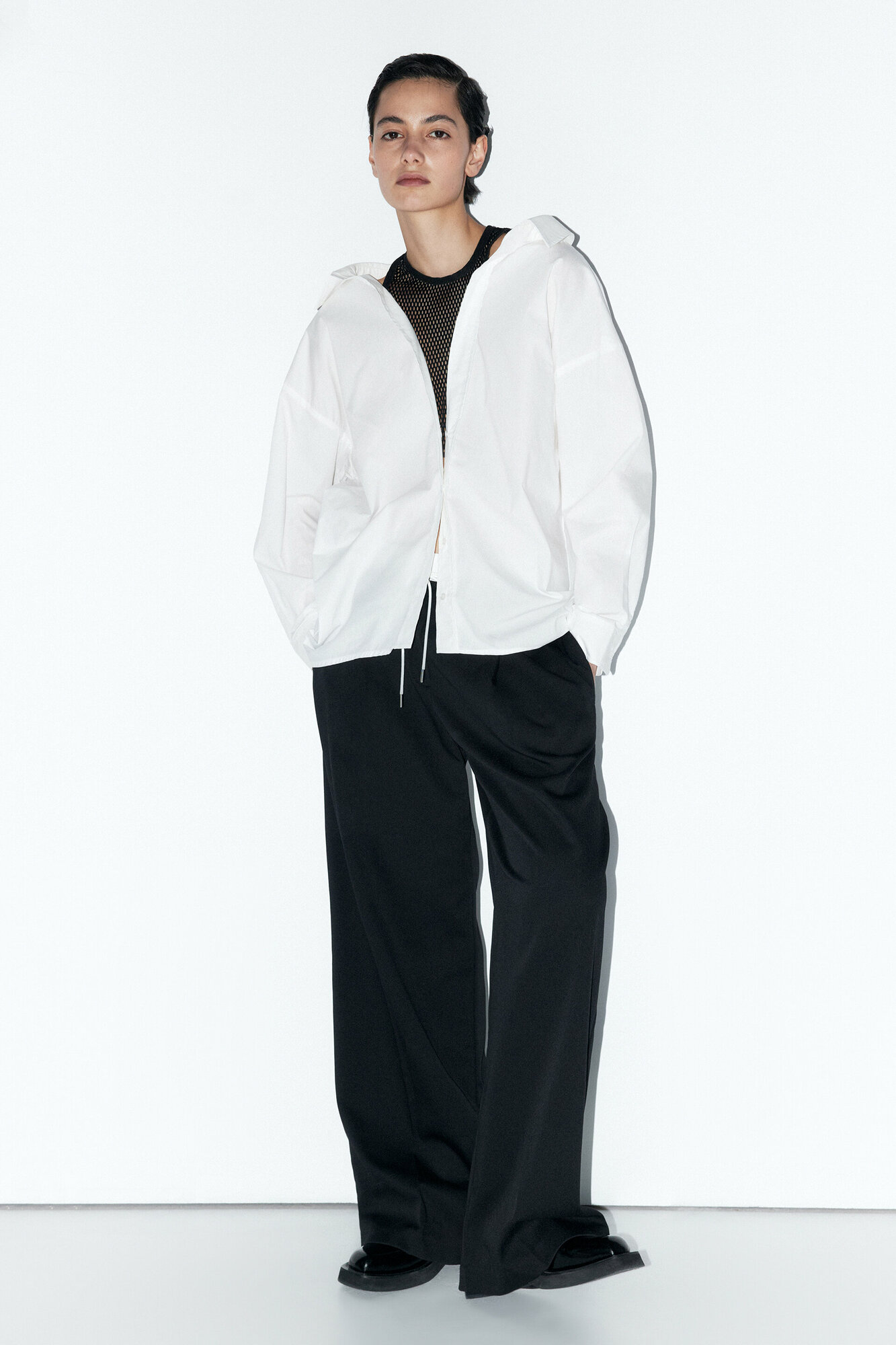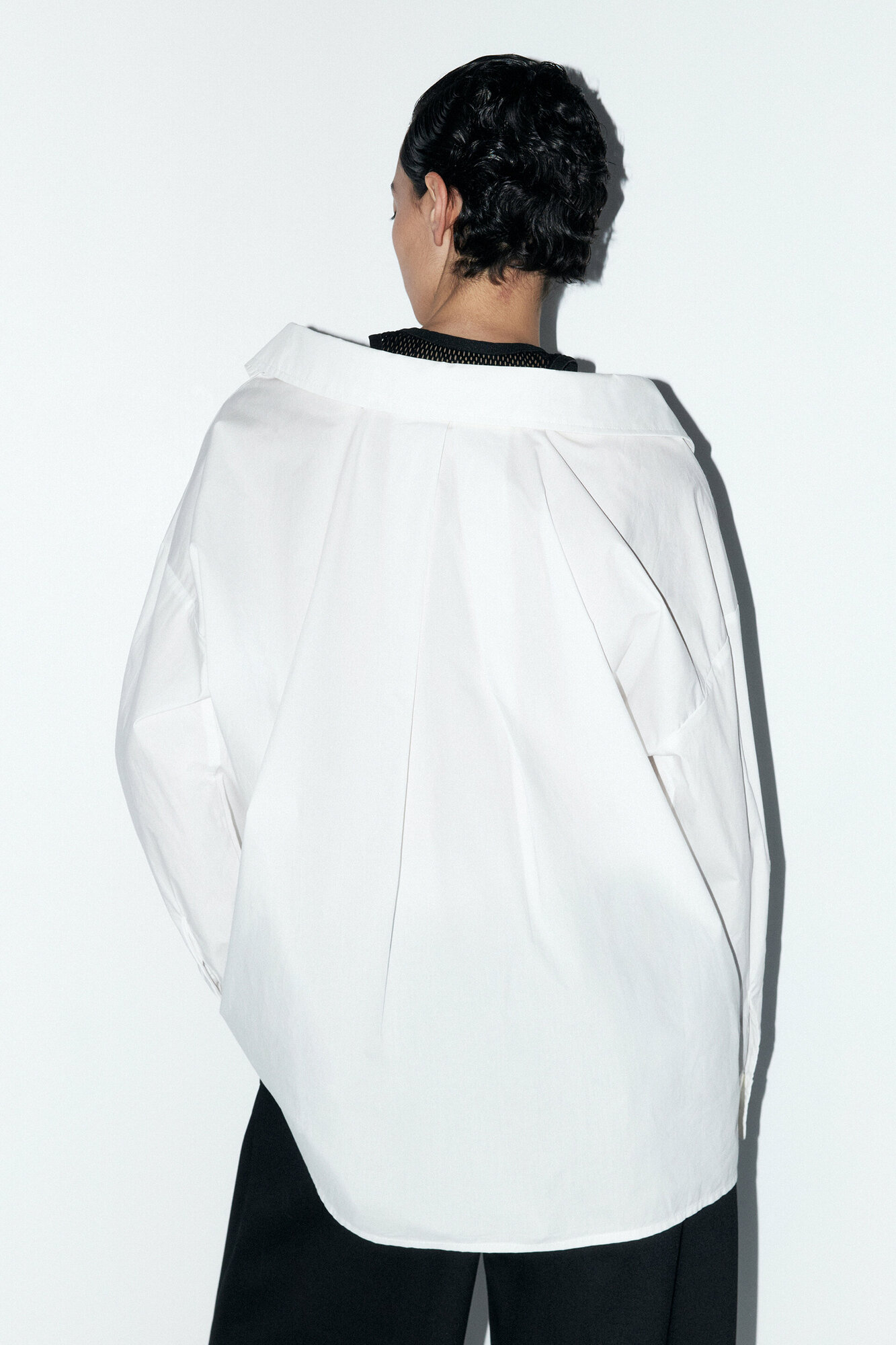 - Рубашка oversize с майкой из сетки. Удлиненная женская рубашка суперсвободного кроя оверсайз из легкой, гладкой хлопковой ткани